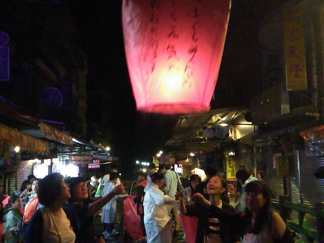 雨もあがり、風もなかったので、綺麗に天燈が上がりました。