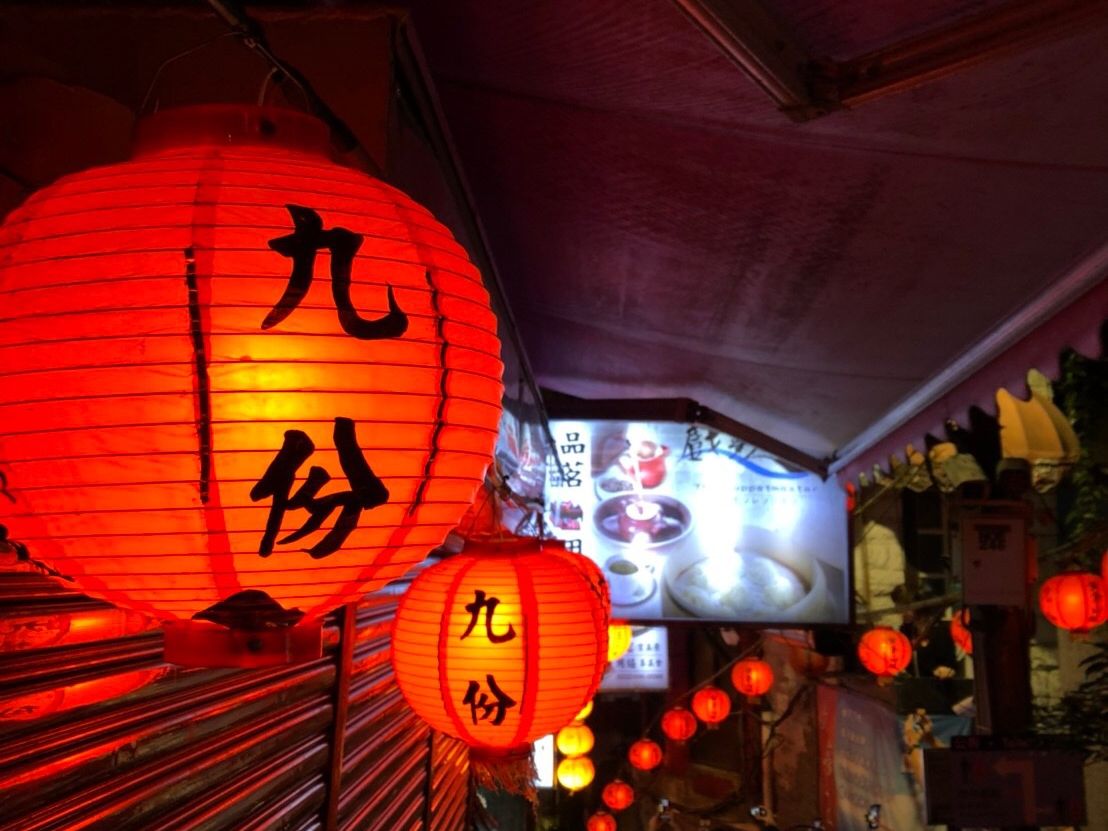 私は最初に花文字を書いてもらってから、ブラブラお土産を見たり、芋圓のお店でお汁粉を食べたり、夕飯に小籠包を食べたりしていたら、ちょうどよい自由時間(2時間)でした。雨のため夜景は見えませんでしたが、夜の九份の雰囲気は充分に楽しめました。