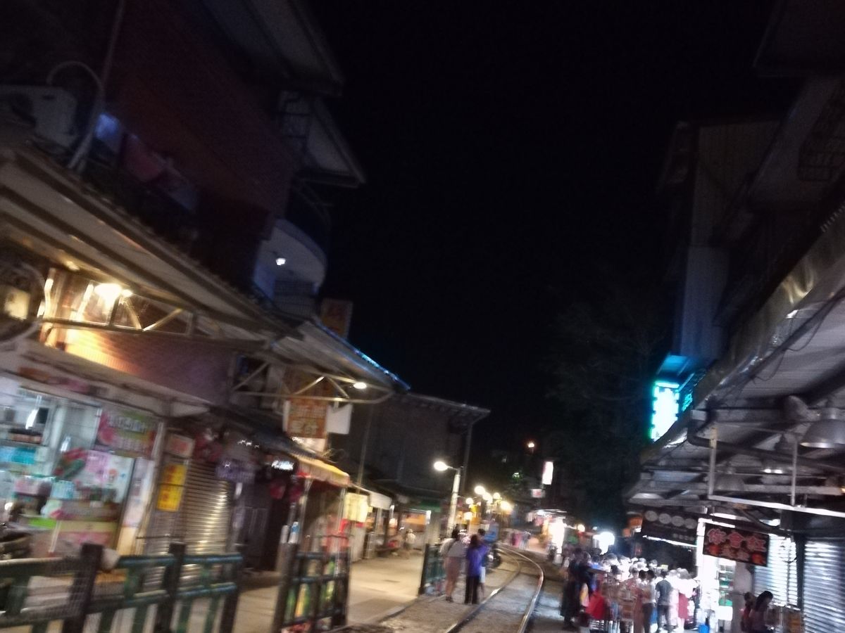 そのあとに十分(天燈上げ)に向かうときは8時過ぎくらいになるので、現地に着くと人混みはなくゆっくり願い事を書いて上げられました。列車も間近を通過した。 帰りは饒河街夜市でドロップオフしてもらいプラプラ散歩しながらホテルへ。