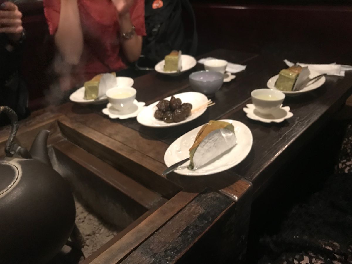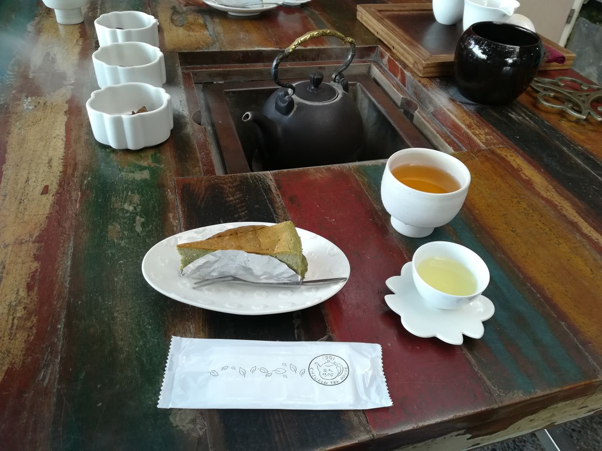 お茶と一緒にチーズケーキや茶梅などのお茶請けを楽しみました。