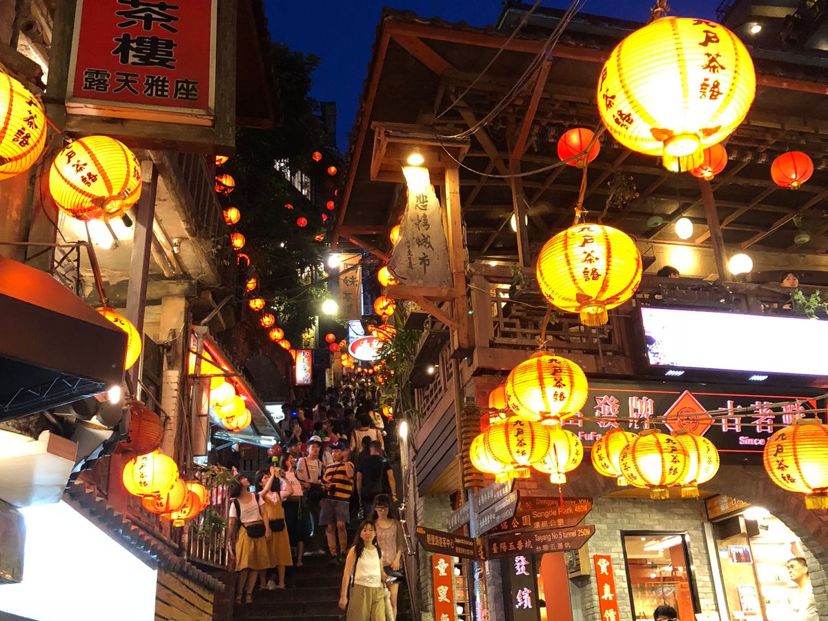 夕暮れからの九份はとても情緒があり、夜景がとても綺麗。夜の十分は真っ暗な空に天燈が吸い込まれるように上がっていく様子には感動しました。