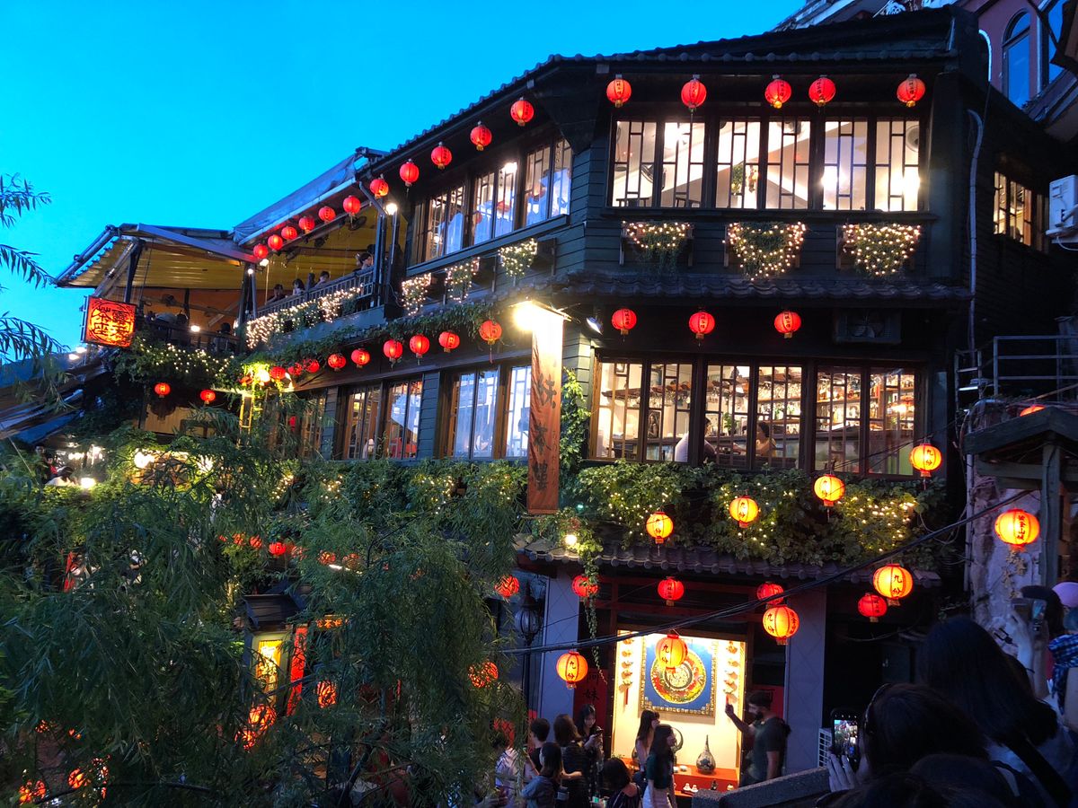 九份 夕暮れから夜へと移り変わる阿妹茶酒館の景色を見ることができました。 夕食は普通でしたが、食事をしながら少しづつ変わっていく景色良かった。 店を出るときの入店待ちの行列をみると予約しないでこの時間帯に海悦楼に入ることは無理だと思う。