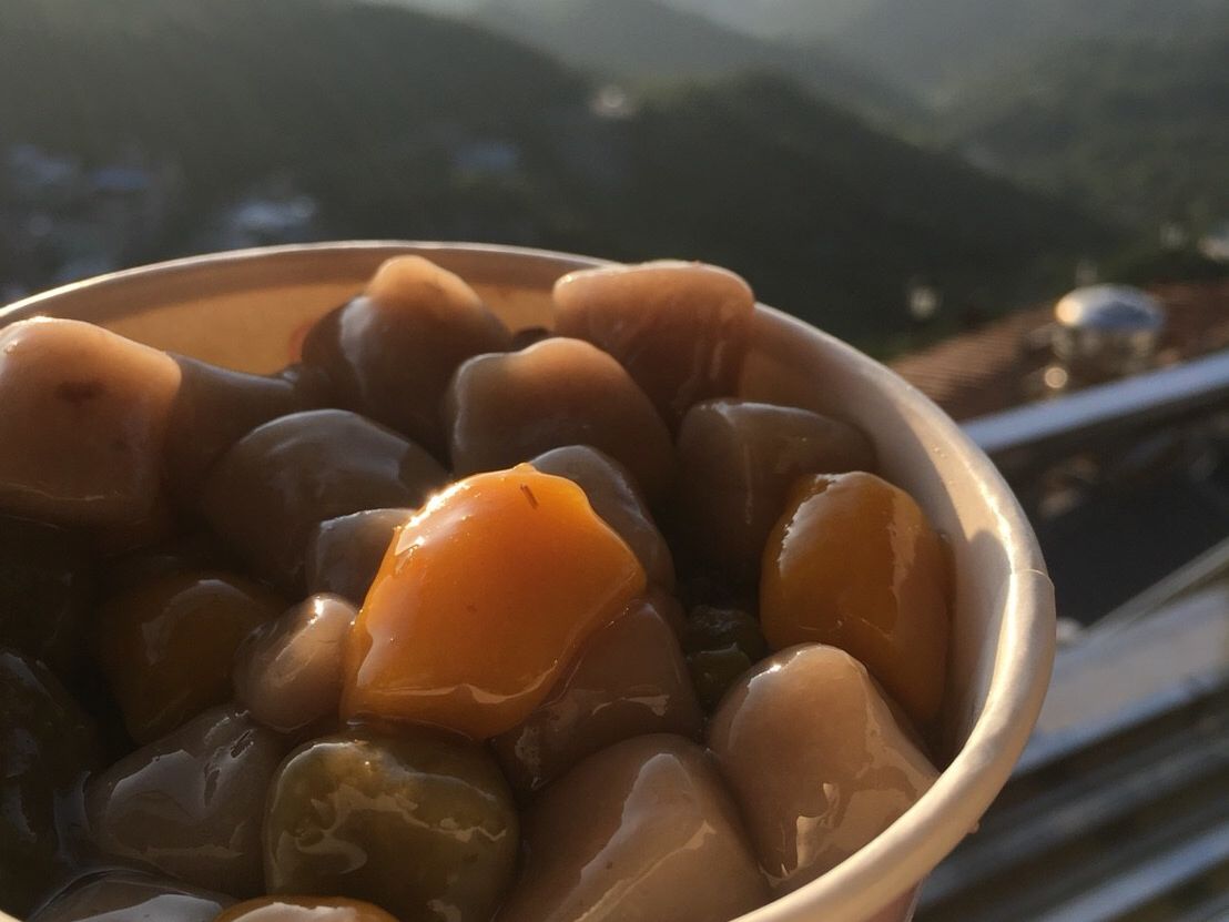 狙い通りの素晴らしい夕暮れに出会えました。でも親子3人がもっと感動したのは台湾の食べ物でした。何を食べてもおいしく、ガイドの張さんおすすめのものはどれも外れなし。九份から夜市と食べ続け、まさに食い倒れの旅でした。