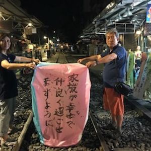 天燈上げが夢があって楽しかったです。最初、大きな木の下で飛ばしたところ、すぐに気に引っ掛かり燃えてしまい悲しんでいました。そばにいたガイドさんが、もう一度願いを書いて飛ばせるよともう一度チャレンジさせて下さり、今度は木から離れたところから飛ばしたところ、天高くどこまでも登っていき、家族でそれを眺めながらすごく喜びました。