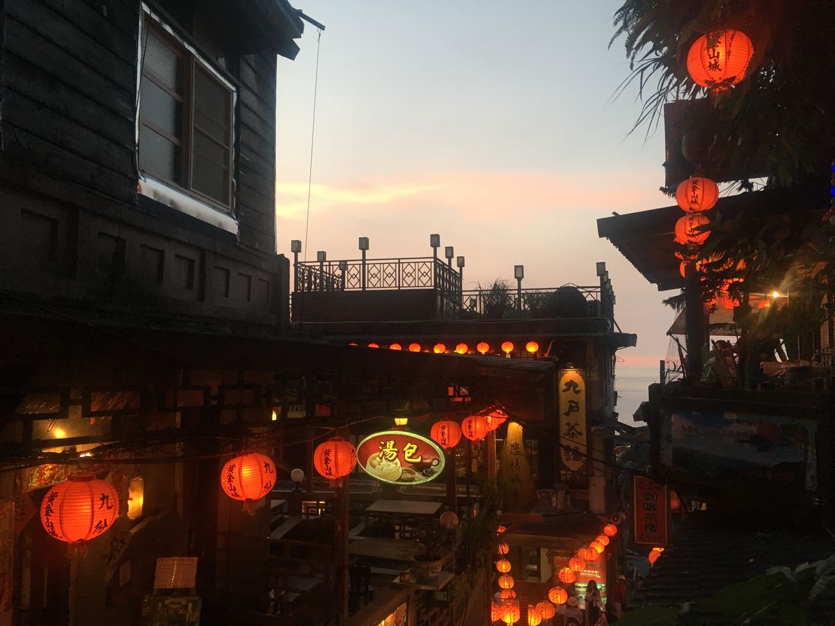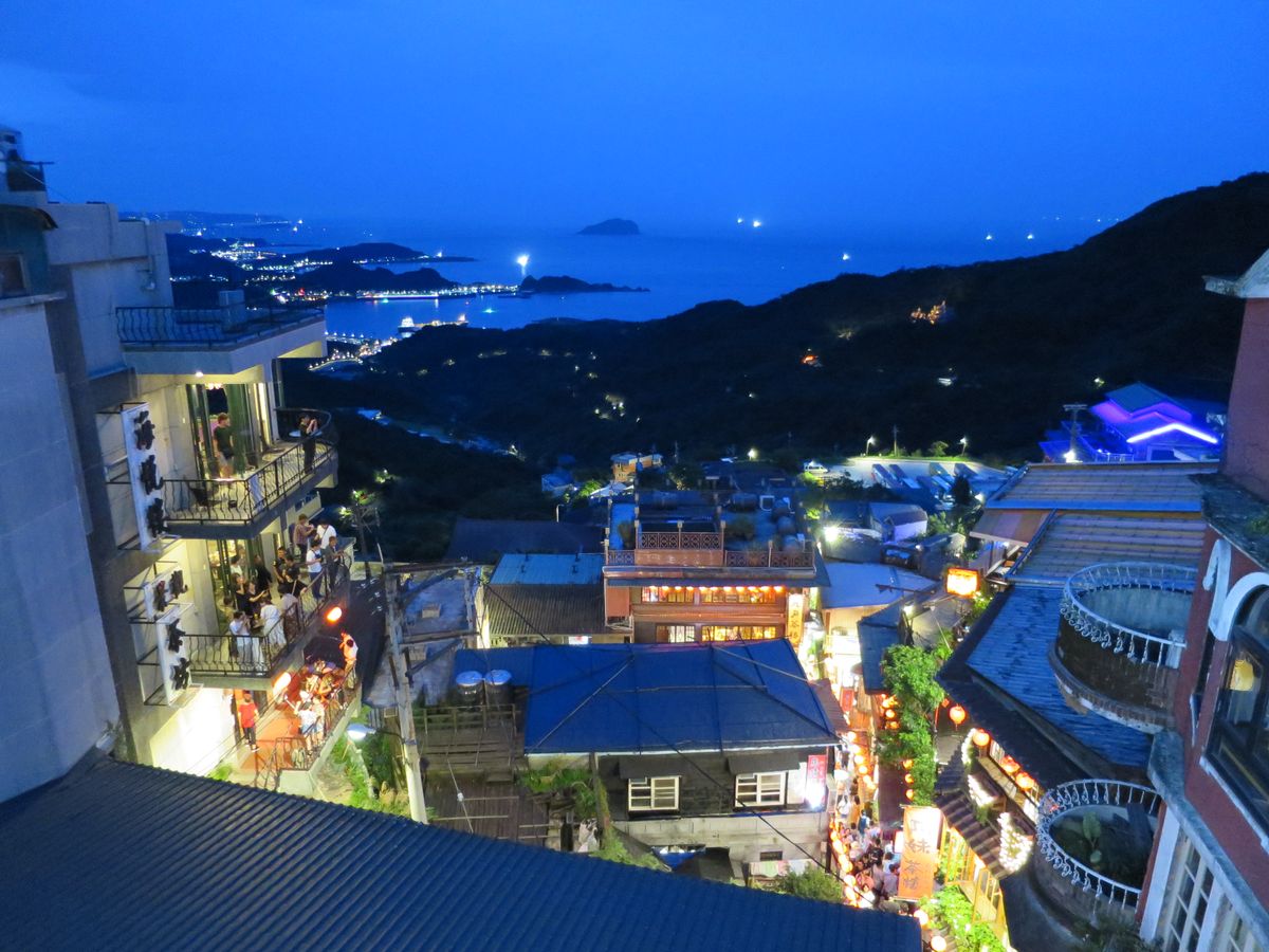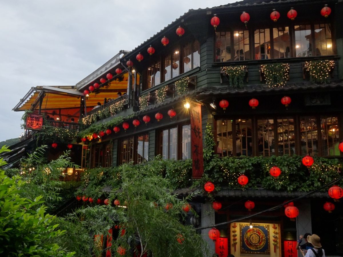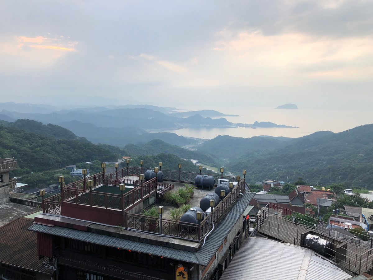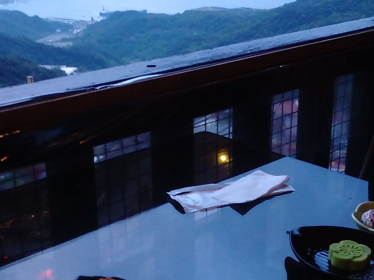 九份は雨が奇跡的に降らず助かったものの、曇っていたのが残念。前回みた九份の夕焼けがすっごく綺麗だったので…。時間的にも夕暮れちょい前だったから晴れてても見れなかったのかもしれません。1時間弱の滞在で見て回る時間的余裕はなさそうだったので、阿古屋茶屋でずっとのんびりお茶をするという選択を。これが最高の選択だったなと思います。バルコニー席のいい席を案内してもらえたのでラッキーでした!