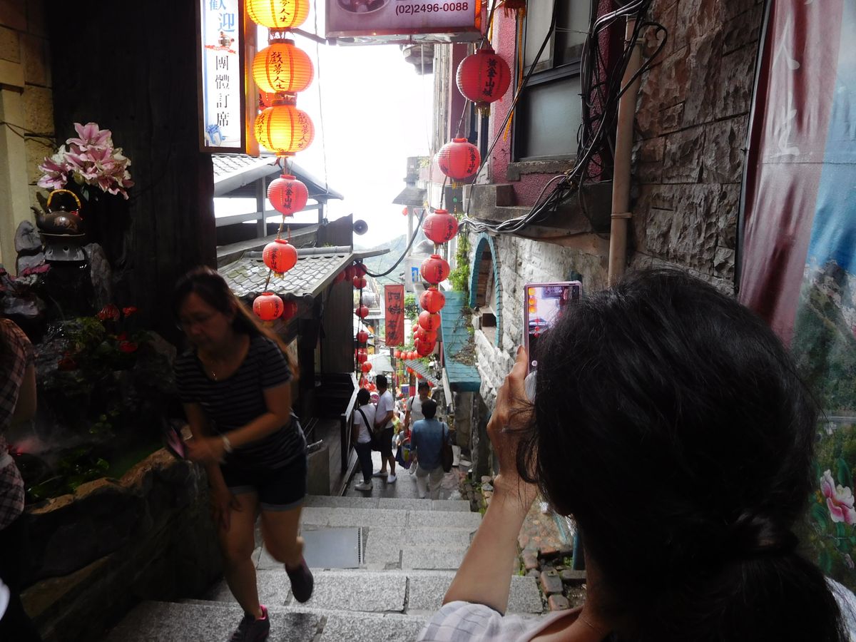 九份では上の方で降車させてくれ、階段を下っていき写真スポットにたどり着くという感じだったので楽でした。