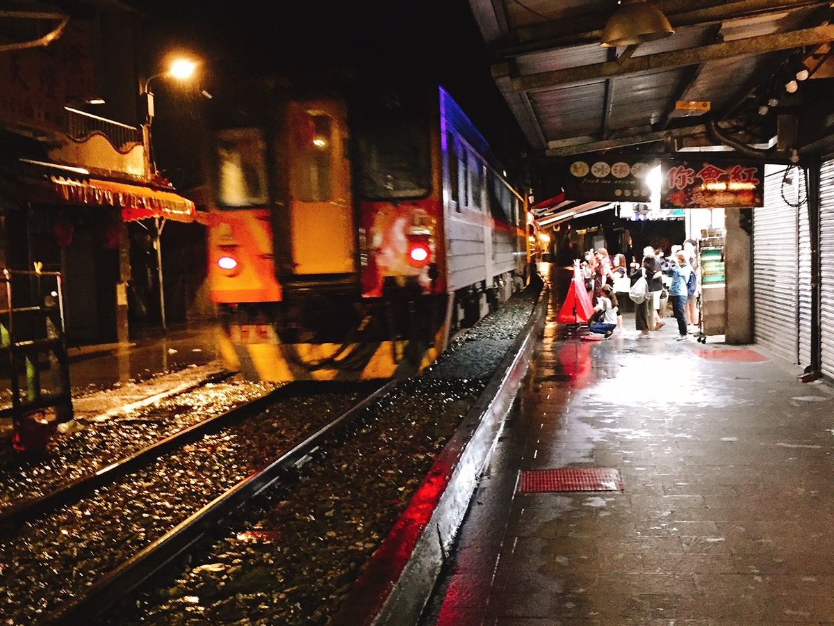 車内から九份の夜景を見つつ十份へ向かいました。やはり夜の灯篭上げは、とても幻想的で良かったです。
