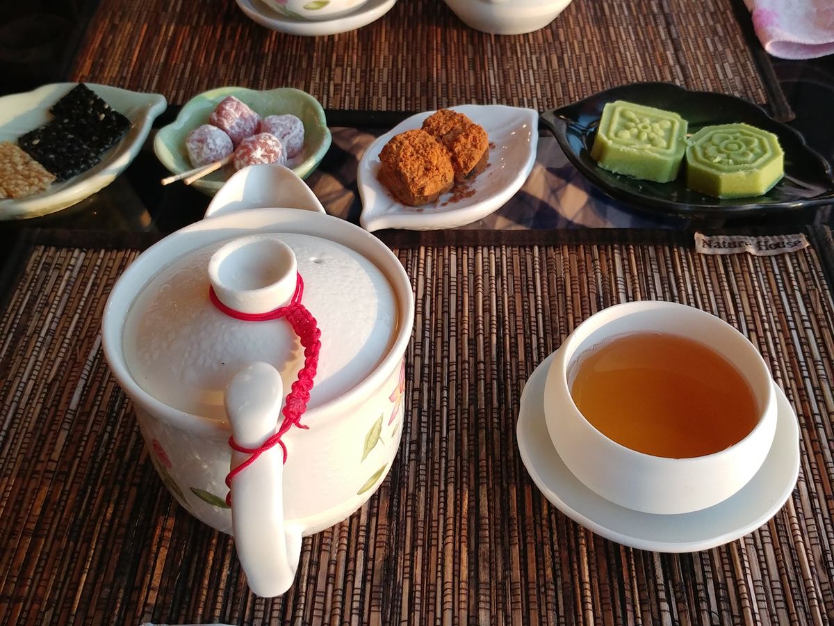 最高の景色と冷たいお茶とお茶菓子。本当に台湾に来てよかったと実感しました。