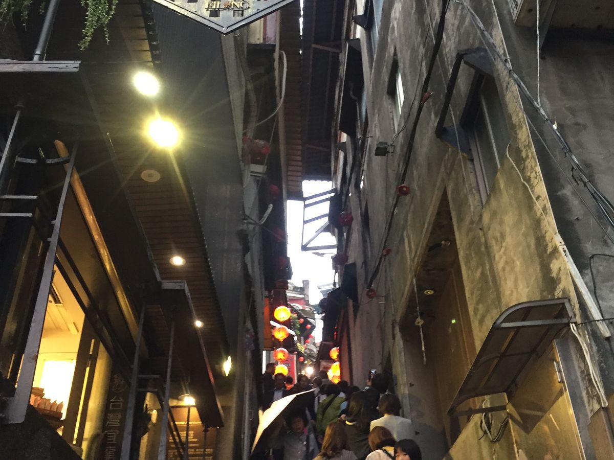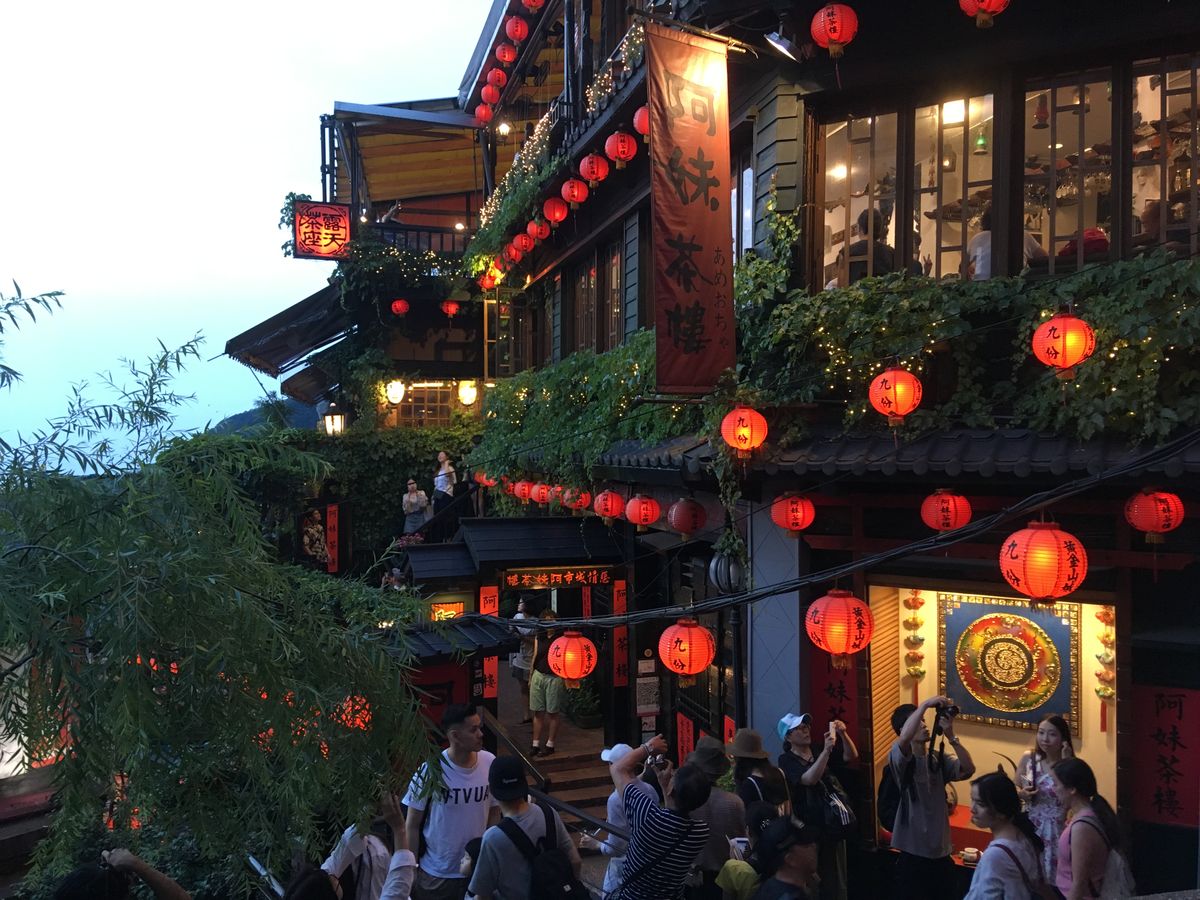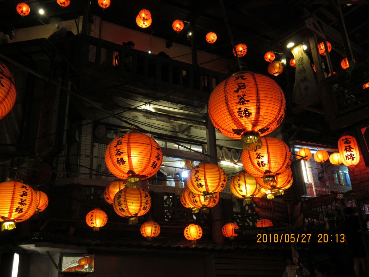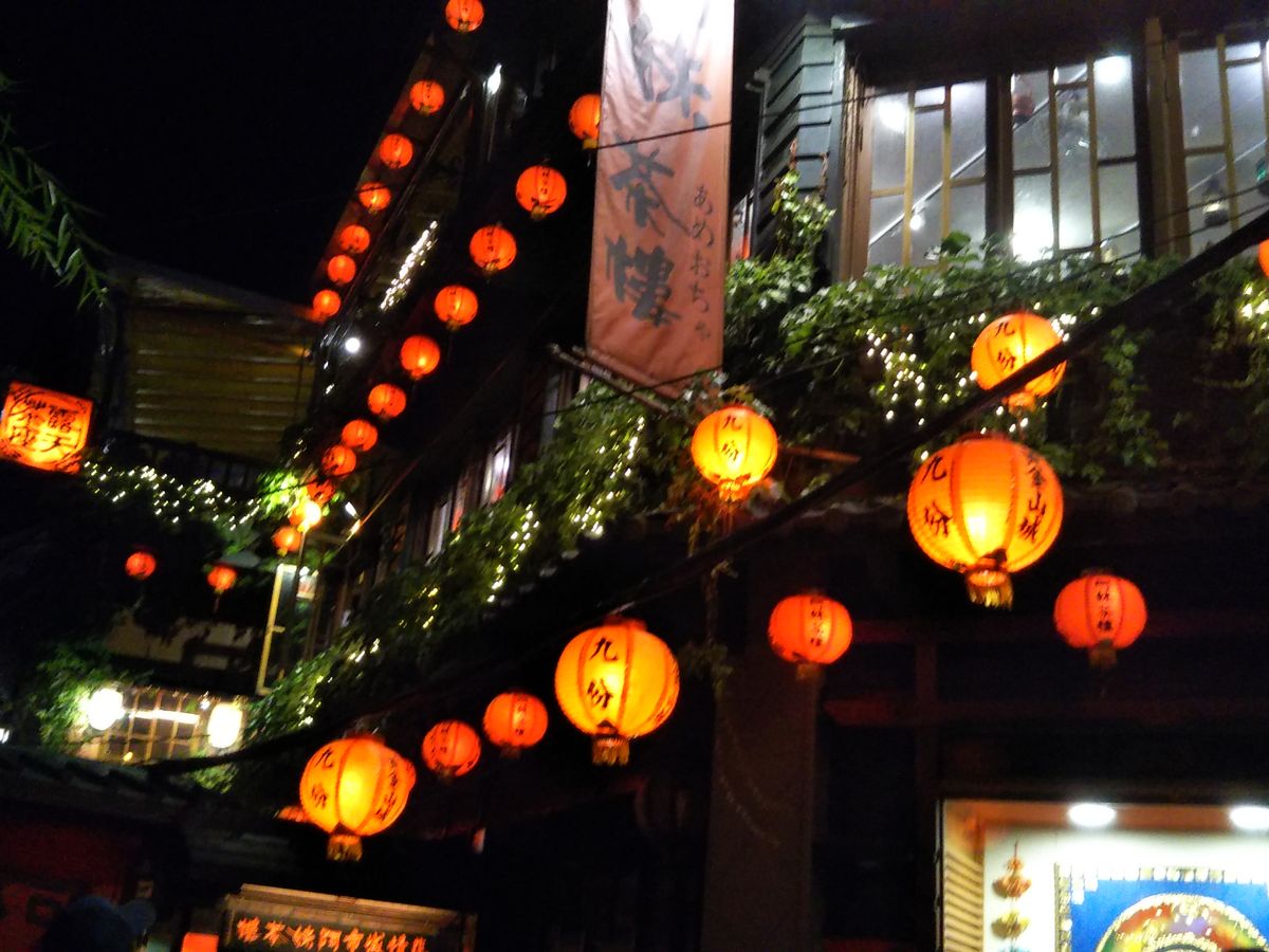 あいにくの空模様で、雨が降ったり止んだりの天候でしたが、夜になれば関係ありません。ライトアップされた九份の街は本当に幻想的でした。