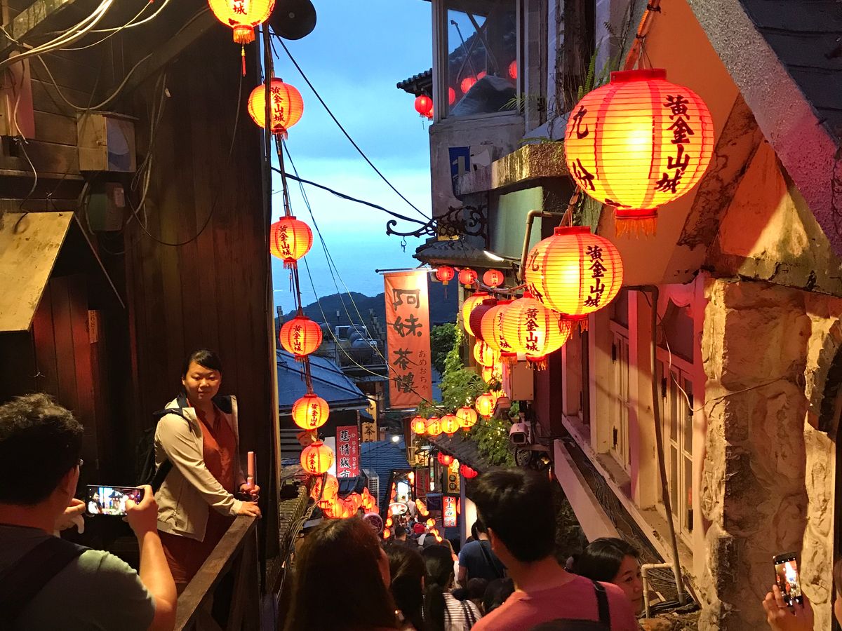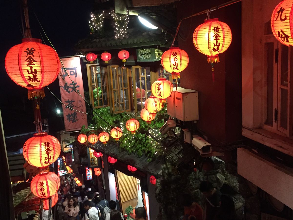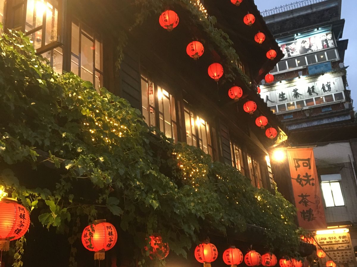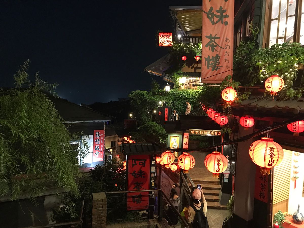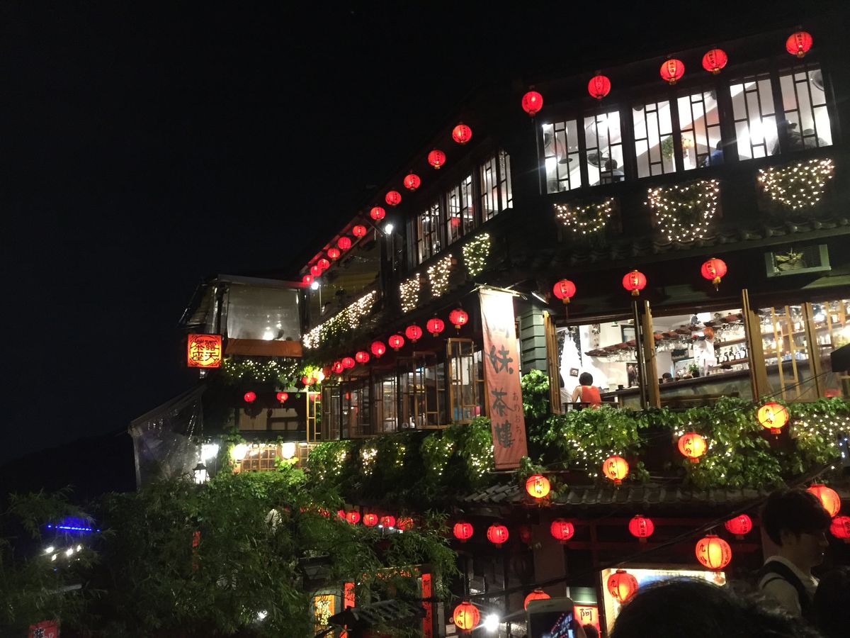 あいにくの空模様で、雨が降ったり止んだりの天候でしたが、夜になれば関係ありません。ライトアップされた九份の街は本当に幻想的でした。