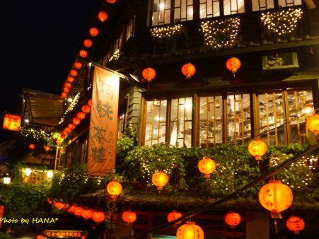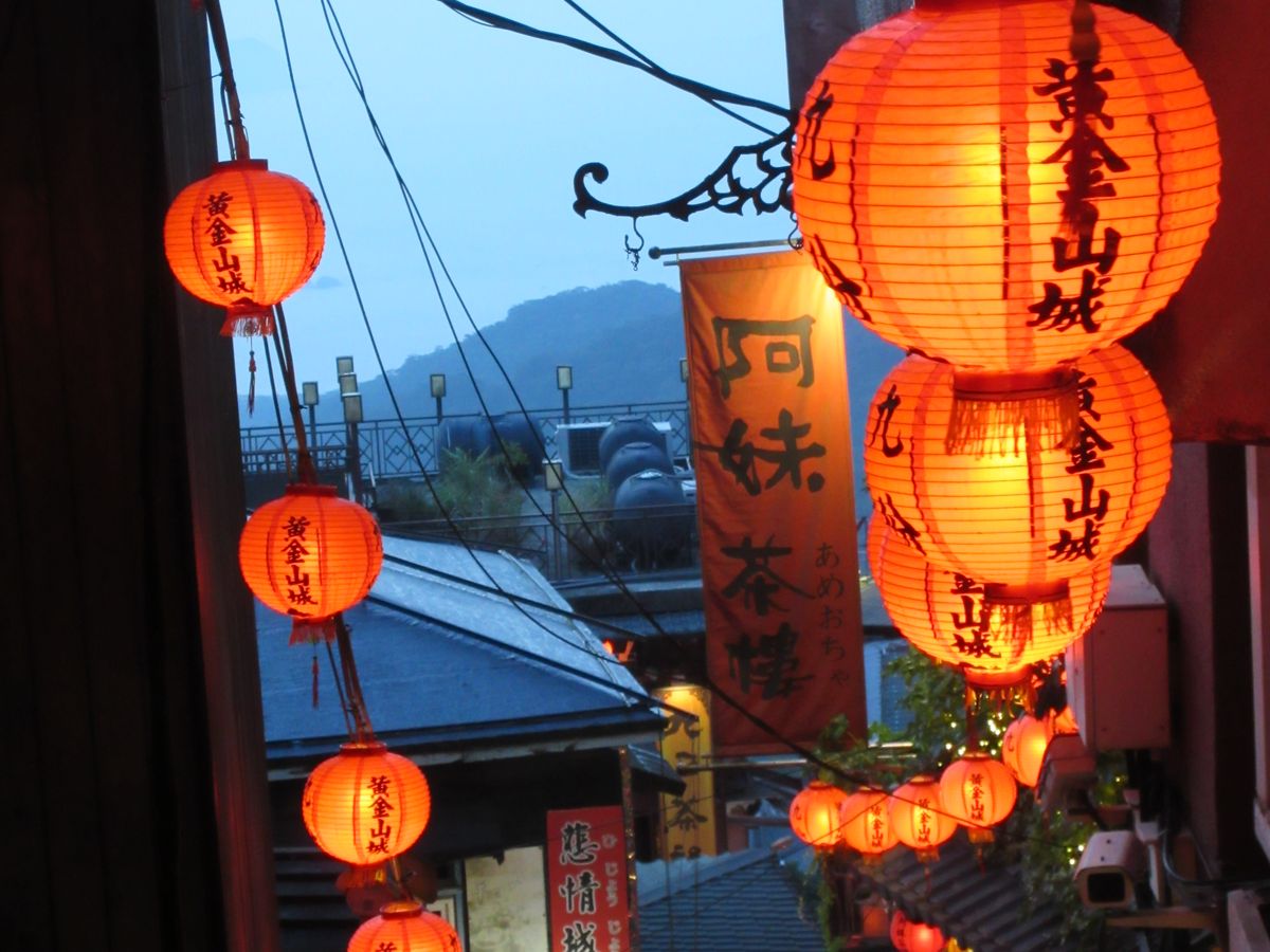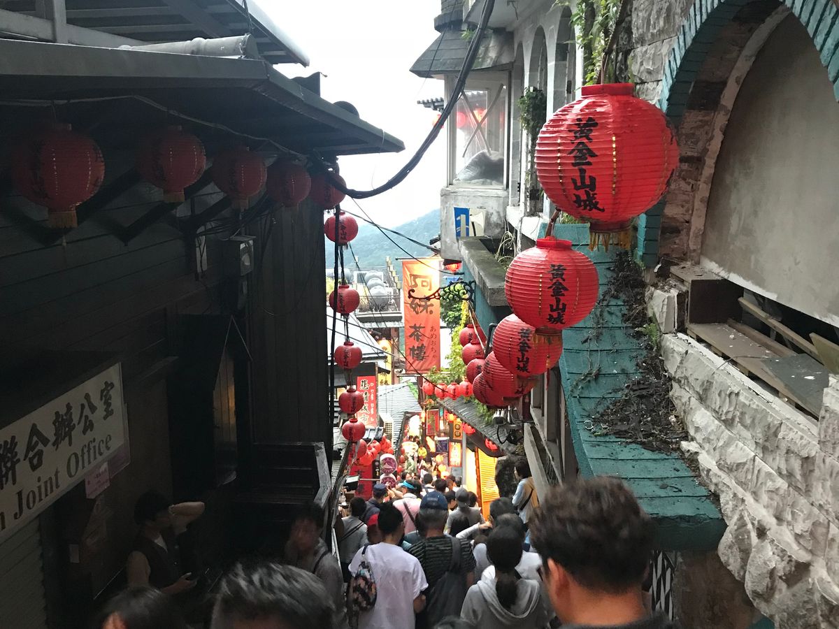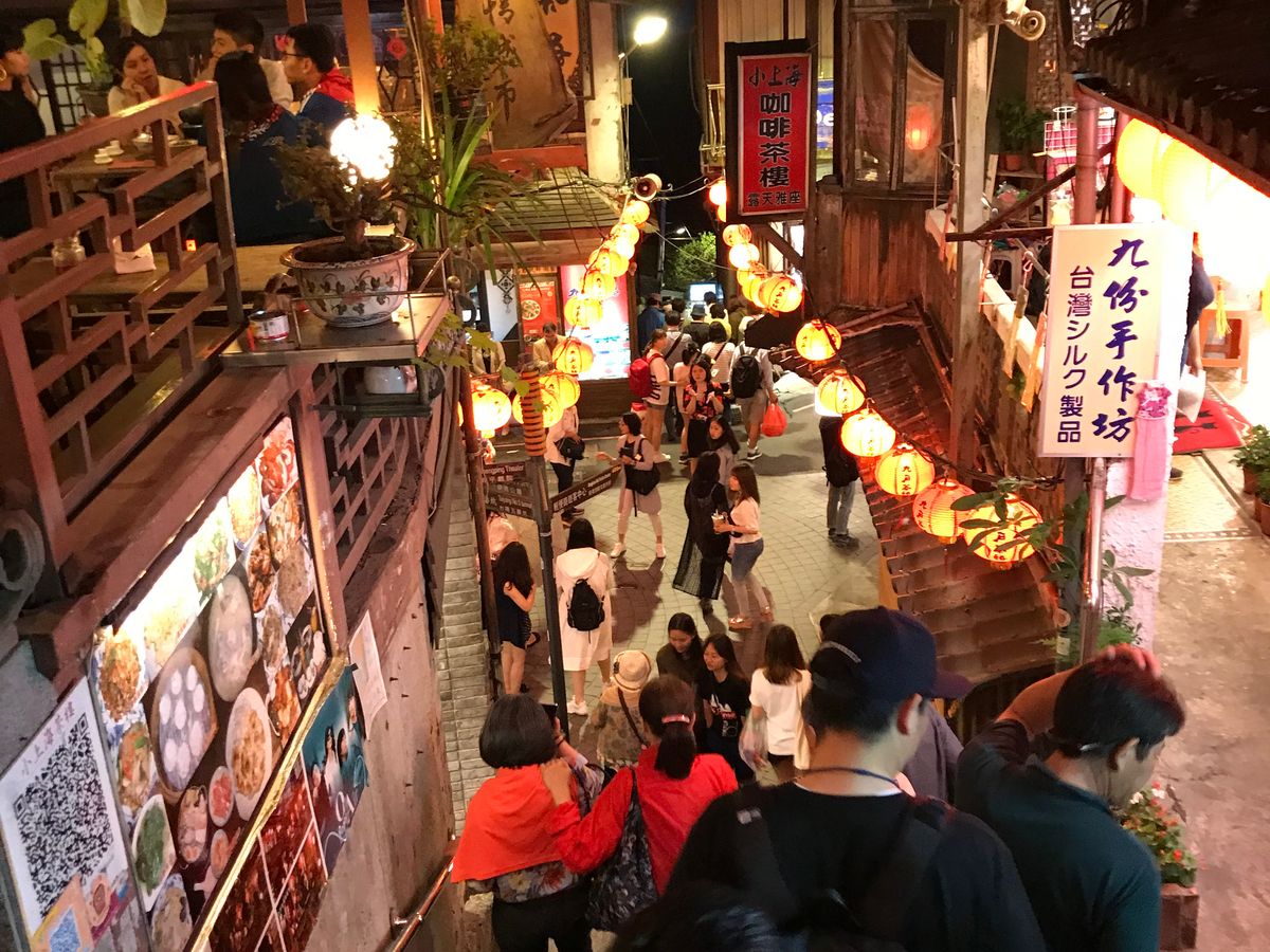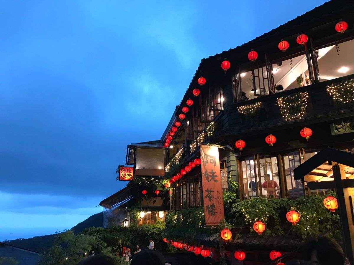 あいにくの空模様で、雨が降ったり止んだりの天候でしたが、夜になれば関係ありません。ライトアップされた九份の街は本当に幻想的でした。