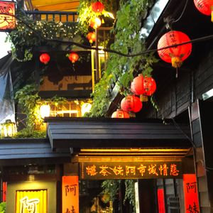 九份出発時間が19時45分だったので、約2時間、豎崎路や基山街を散策、茶藝館でお茶をして楽しみました。たまたま「海悦楼茶坊」のテラス席が空いていたので、夕方から夜にかけての九份の景色を眺めることができ、大満足でした。