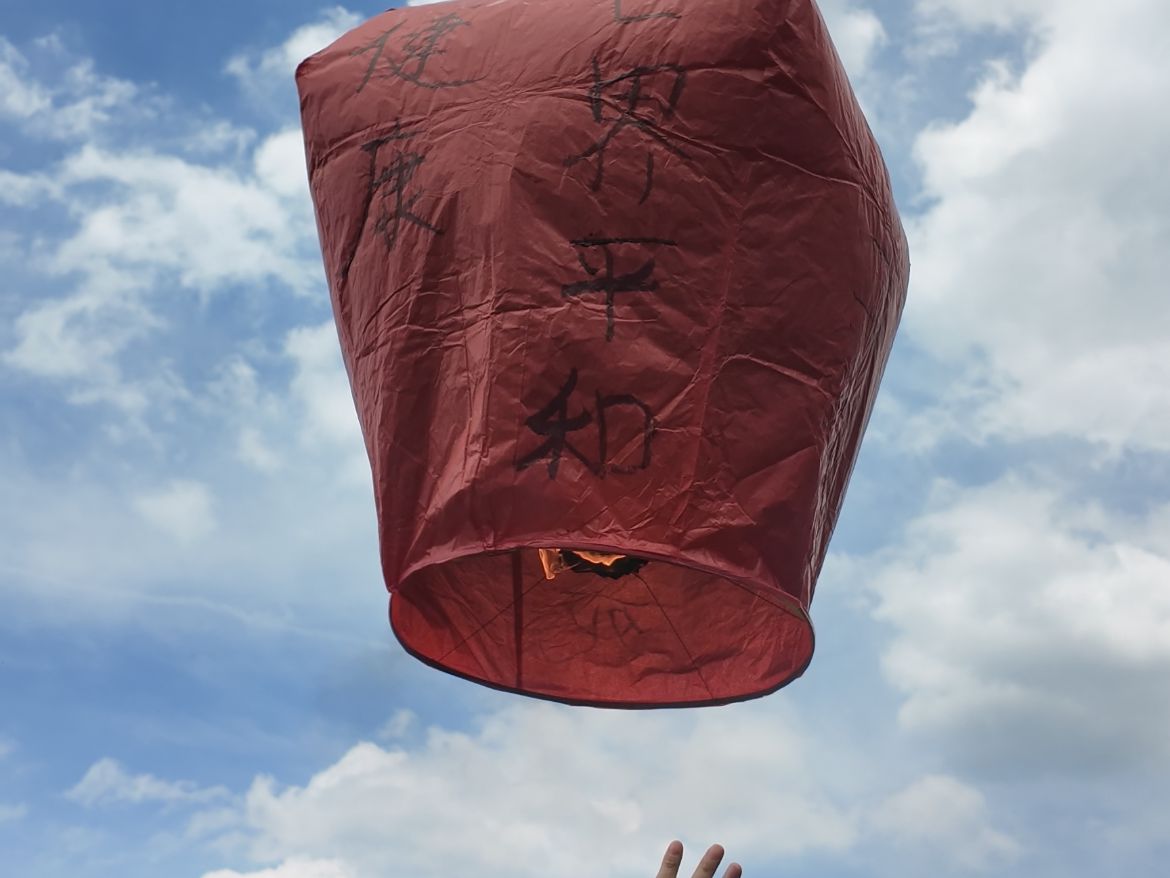 十分での天燈上げは、よく写真などで見る線路沿いではなく、狭い商店の裏口のような場所での実施となり、少し残念でした。天燈もカラフルなものではなく単色で、「インスタ映え間違いなし!」という紹介文とは印象が異なりました。カラフルな天燈にはそれぞれの色に意味が込められており、それを選ぶ楽しさも期待していただけに、物足りなさを感じました。さらに、線路の上で電車が来ないタイミングを見計らって飛ばすという、十分ならではのスリルや景色も味わえなかったのが心残りです。
