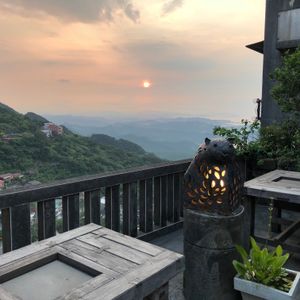 海と山の向こうに沈む日の入りを見ながら台湾茶を頂き、のんびりくつろげました。
