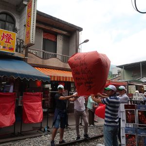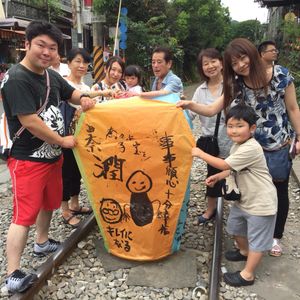 十分では雨もやみ天燈上げができました。願い事もゆっくり書けましたし、天燈上げしてくれたおじさんがユニークで楽しかったです。