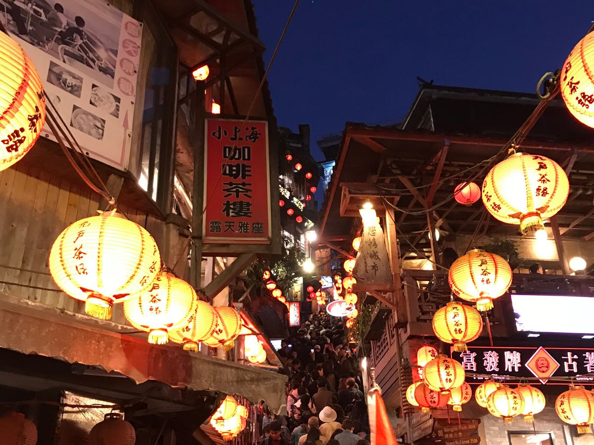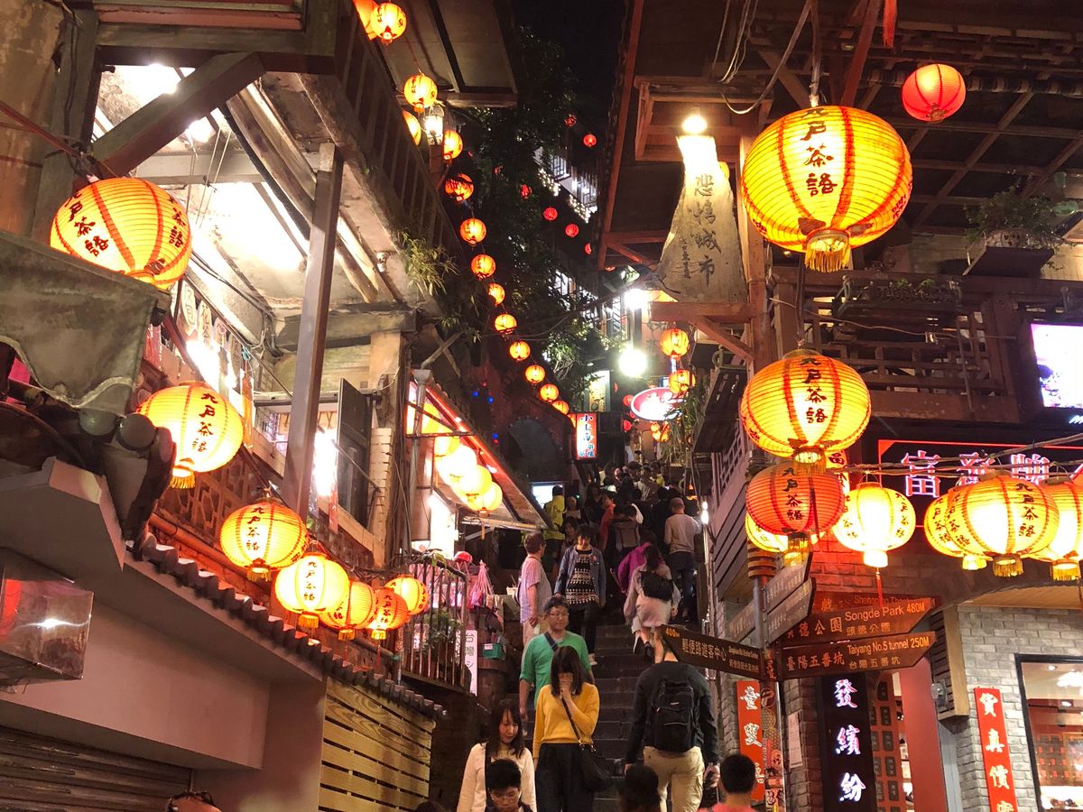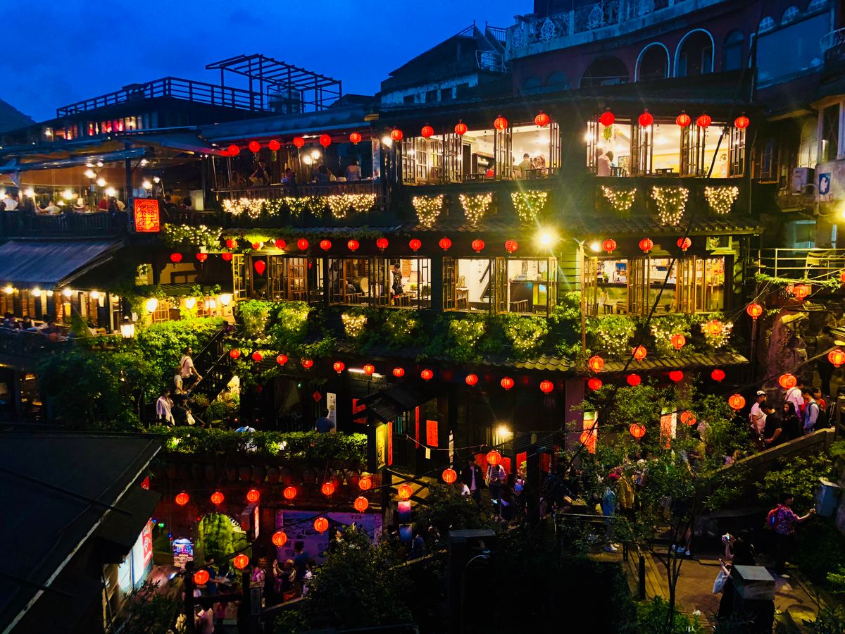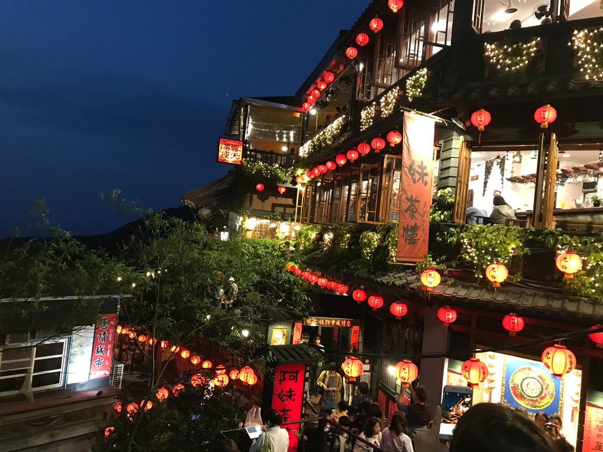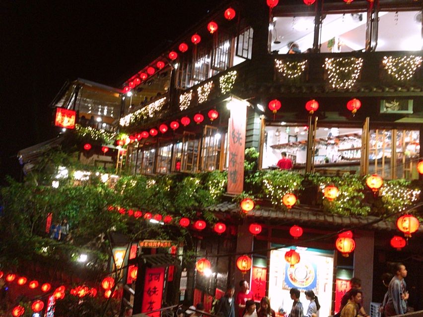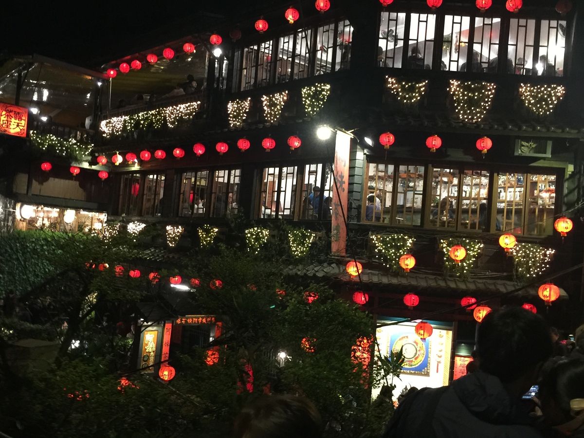 千と千尋の神隠しの舞台モデルとなった台湾の九份です。ここの商店街をぶらぶらしながら、点灯した夕方に茶屋からゆっくりみるのがお勧めです。