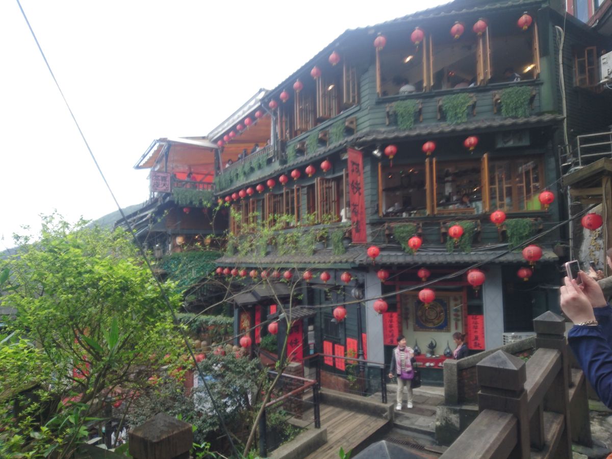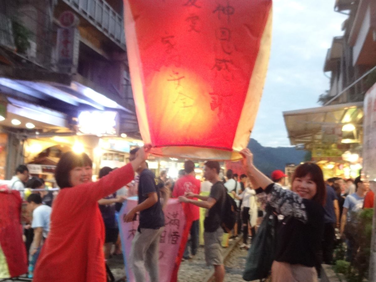 滝を見学し天灯あげをしました。幸い天候に恵まれて青空へ吸い込まれる天灯が印象的でしたた。そこから有名な鉄道に乗り九份へ向かい食事(充分美味しい)をし自由散策をしました。台湾の代表的な観光地というだけあって大変な賑わいでした。