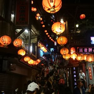 昼にしようか迷っていましたが、夜にして正解でした!ツアー客は25人前後で、バスで向かいました。GW直前の金曜の夜でしたが、九分は空いていたようでした(いつもは満員電車のようだとガイドさんが言っていました。)。雨がちょうど上がった後で、よい時間に行くことができました。夜の九分は綺麗でテンションが上がりました。