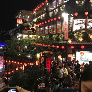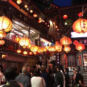 初めての台湾だったので、市内はともかく九份十份にはツアーをお願いしました。まず集合場所では平日にもかかわらず沢山の人が待っておられました。当日夕方からのツアーは3箇所で、九份ツアー、市内ツアー、そして九份十份ツアーが同じ場所で時間待ちです。名前を呼んでくださるので安心します。当日は15名で大型バスを貸切ゆったりで小1時間で九份到着。バスの中ではガイドの王さんが色々説明してくださり退屈しません。到着後も写真を撮ってくれたりととても親切にしてくれます。約1時間自由行動がありますが、とにかく凄い人で提灯の灯りが灯ってからはメインの階段辺りはラッシュ並みの混雑で、これが雨の日は滑りやすく怖いだろうなという感じでした。タロ芋団子を食べただけでお茶を楽しむ時間は取れなかったです。ゆっくり楽しむのなら個人でまた来たいなと思いました。十份では夜のランタン上げを満喫しました。1グループ1つのランタンで、お店の人に写真を撮って貰うのですが、まぁ上手い事‼︎おまけに動画まで綺麗に撮ってくださり感激しました。