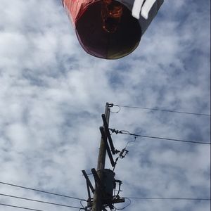 間近を通過する電車に迫力を感じた後、天燈上げで盛り上がりました。
