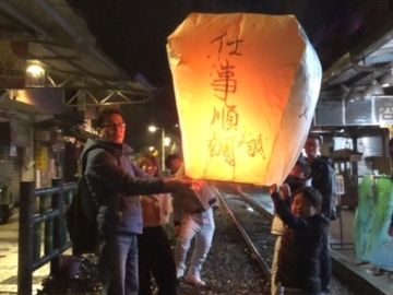 親子3人で参加しました。朝7時40分台北のホテルからマイクロバスで出発して、十分瀑布を見てから念願の天燈上げ。すごい人でしたが、活気と熱気を体感しました。
