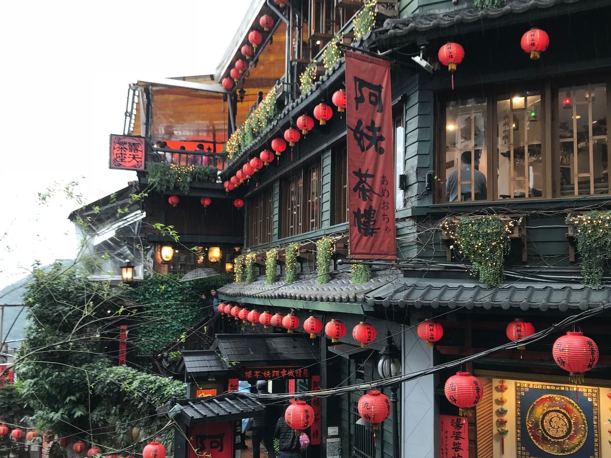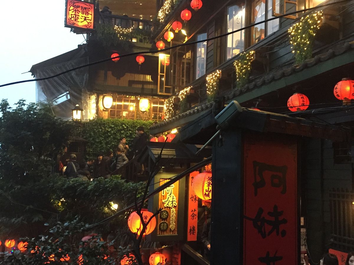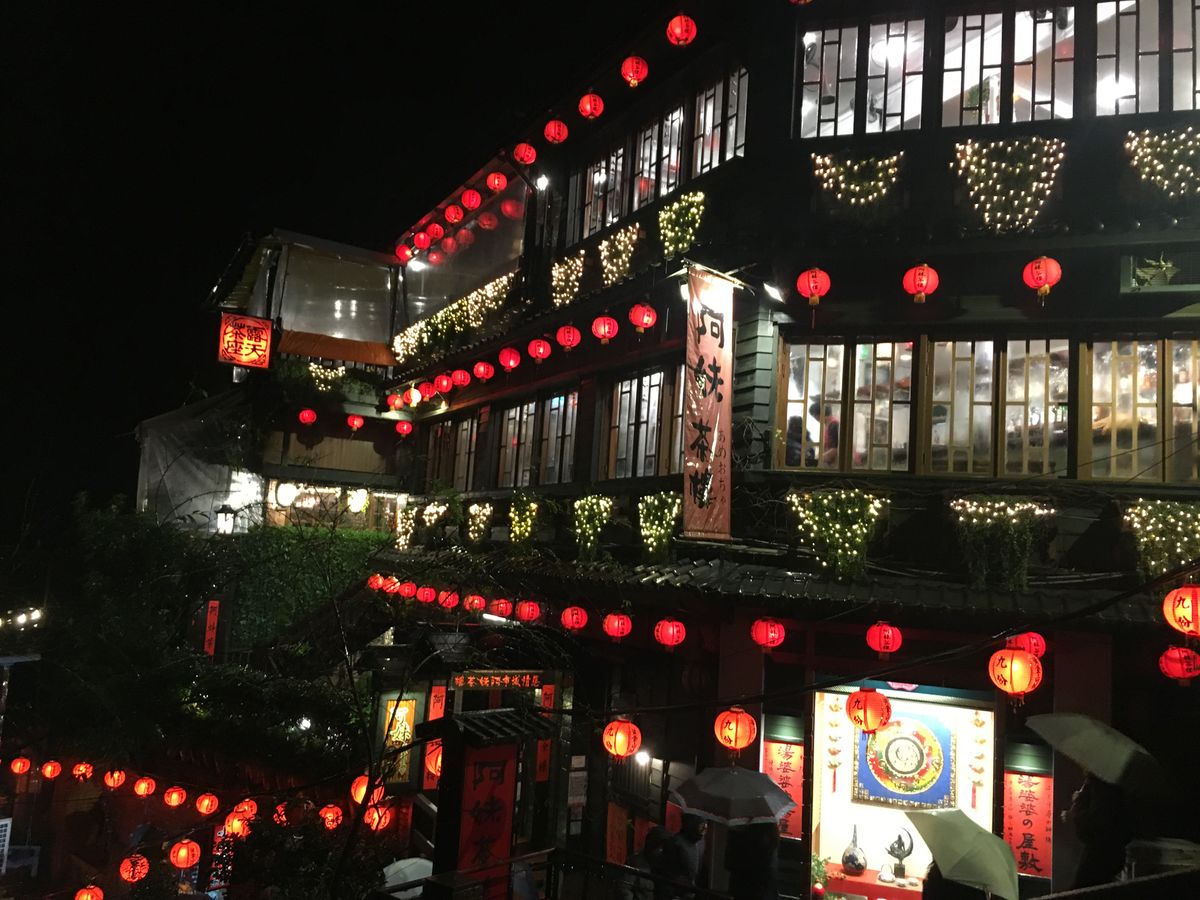 混み合った九份では混雑を避けて古民家の佇まいに趣があり、窓からの街の夜景を贅沢に見下ろすことのできるレストランでおいしいお食事をさせていただきました。街中の、おばあちゃんのやさしい味のおしるこも、最後の台湾のお茶を満喫できるお茶屋さんも、大満足なチョイスでした。