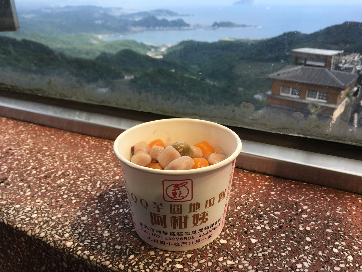 写真を撮りながらゆっくり歩き、花文字を書いてもらう間に景色を見ながら芋圓を食べたりと、ちょうど良い滞在時間でした。名物の草餅も並ばずに買うことができました。