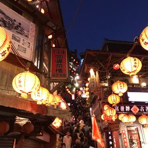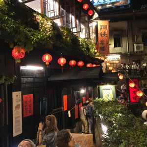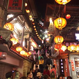 昼の九分は何度か行ったことがあったのですが、夜は初めてでした。込み具合は昼と同じですが、他のツアーより集合時間が遅い分、ツアーの終了30分前くらいになると、だいぶん空いてきます。お茶屋さんでも少しゆっくりできて良いですよ。夜市は規模も大きく食べ歩きに最適です。時間は40分でしたが、一直線の夜市を端から端まで、人の流れの速度に合わせて歩くと、集合時間には間に合わなくなります。私はゆっくりしたかったので、現地解散を選択しましたが、夜市の場所はMRTの駅のすぐ側なので帰りも何の問題もなかったです。