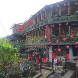 滝を見学し天灯あげをしました。幸い天候に恵まれて青空へ吸い込まれる天灯が印象的でしたた。そこから有名な鉄道に乗り九份へ向かい食事(充分美味しい)をし自由散策をしました。台湾の代表的な観光地というだけあって大変な賑わいでした。