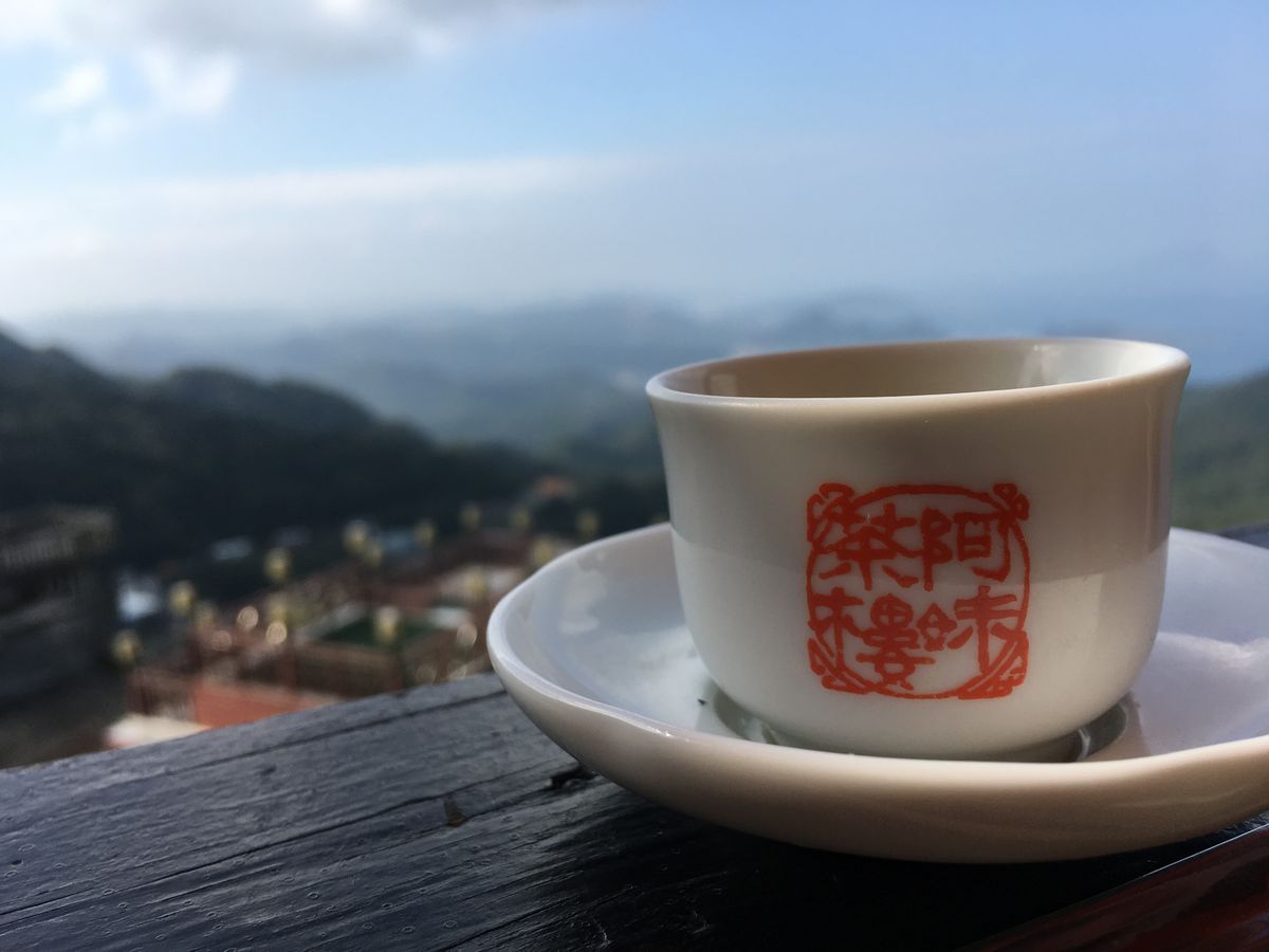 お茶屋さんらは夜の九份では見れない山と海が一望できました。