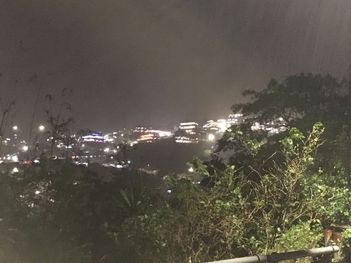 滝のように雨水が落ちてきて、観光・買い物どころではなかつたのが