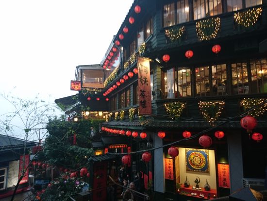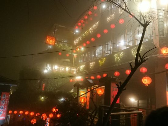 夜に九份に行きましたが霧が出ていて、赤い提灯がぼんやりかすみ「千と千尋の・・・」の雰囲気に包まれましたょ。