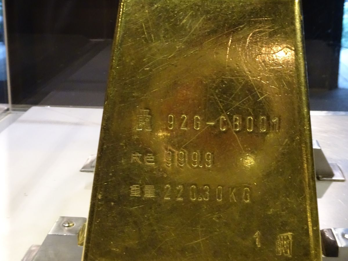 黄金博物館では、実際に220㎏もある金塊に触れることもできます。