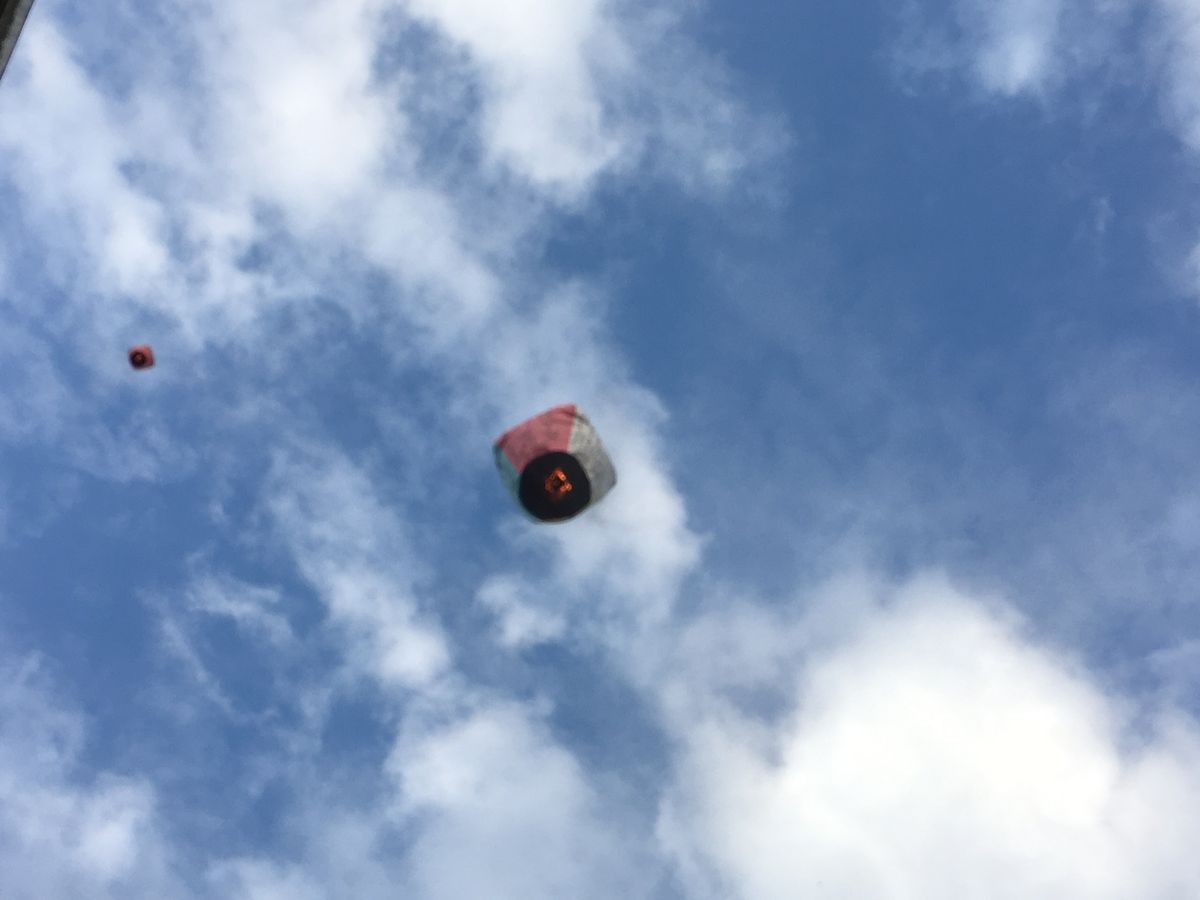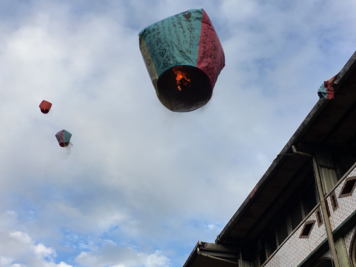 当日は小雨降る中でしたが夕方の天燈上げはとても幻想的で、徐々に暮れていく中に舞い上がる様子に感動しました。