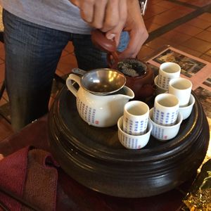 混み合った九份では混雑を避けて古民家の佇まいに趣があり、窓からの街の夜景を贅沢に見下ろすことのできるレストランでおいしいお食事をさせていただきました。街中の、おばあちゃんのやさしい味のおしるこも、最後の台湾のお茶を満喫できるお茶屋さんも、大満足なチョイスでした。