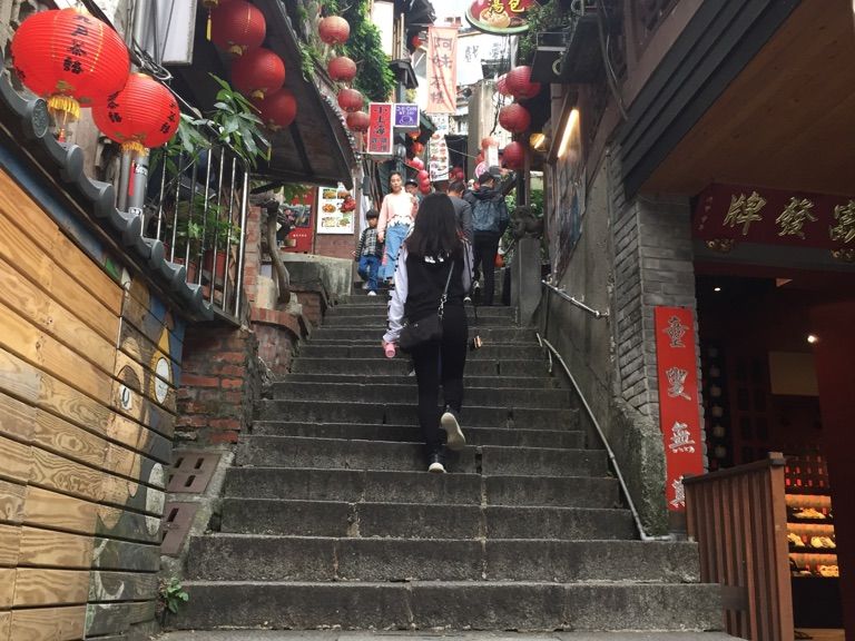 山の下に駐車場があり、自分で階段を上がって九分観光をして戻ってくる形です。