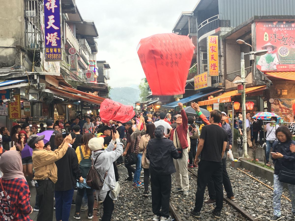 線路沿いにお店が並んでいて天燈が次々に飛んでいく情景に感動しました。