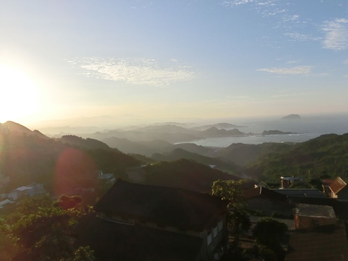 このツアーとは関係ありませんが、十分では、滝に虹を見ることができ、天燈は青空に吸い込まれていきました。雨が必ず降ると言われていた九份では、おかげさまで一滴の雨にも降られず、きれいな西日に照らされテラスで海を見ながらのお茶タイムができました。貸し切りタクシーのおかげで、台北旅行の良き思い出の一コマになりました。
