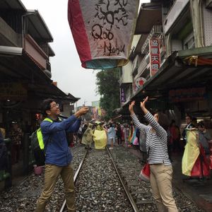 十分の天燈上げの際は、私たちが天燈に願い事を書き入れ空に放つ間、高さんが写真やビデオを撮影してくださり、素敵な思い出を記録に残すことができました。