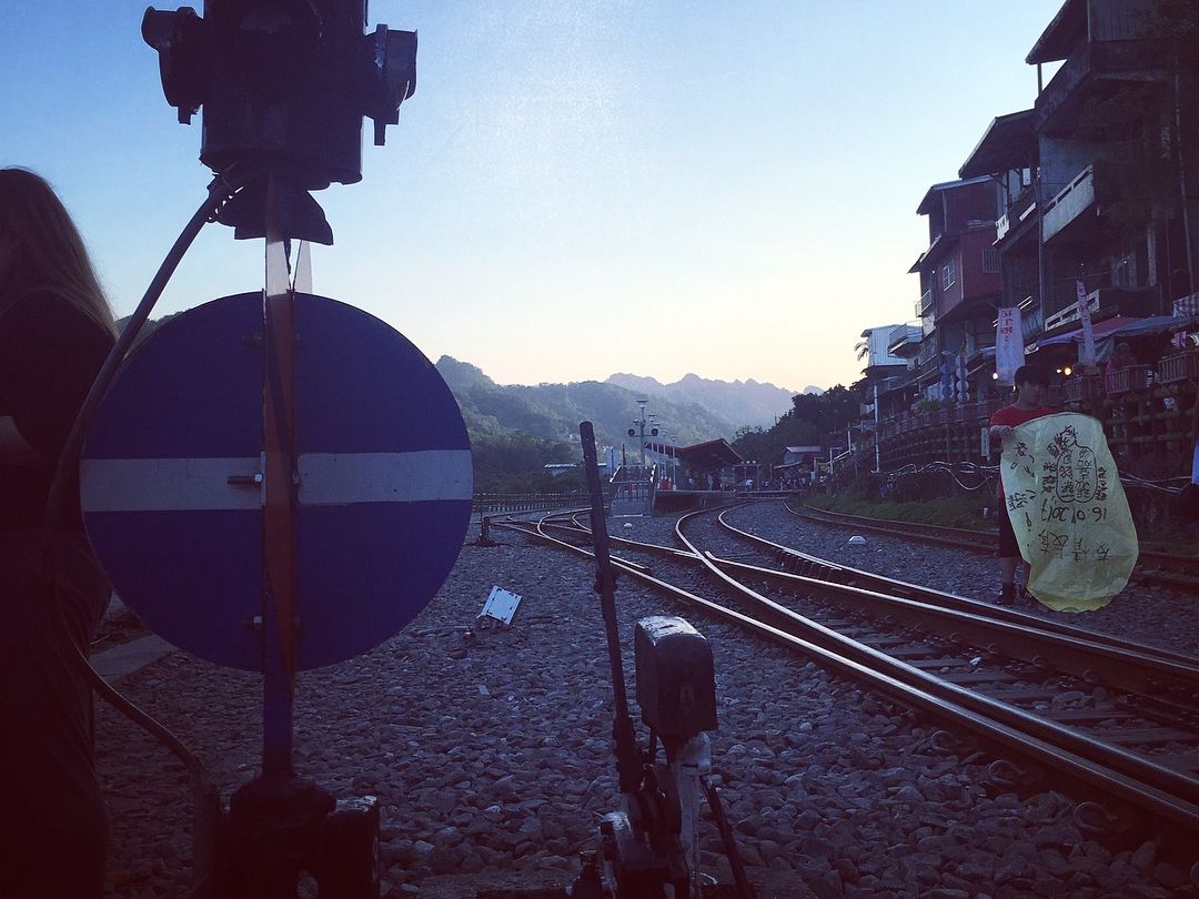 九份での滞在時間を伸ばしたかったので十分駅での灯籠上げをやめたのですが、せっかくだからと線路で写真を撮る時間を設けてくださいました。