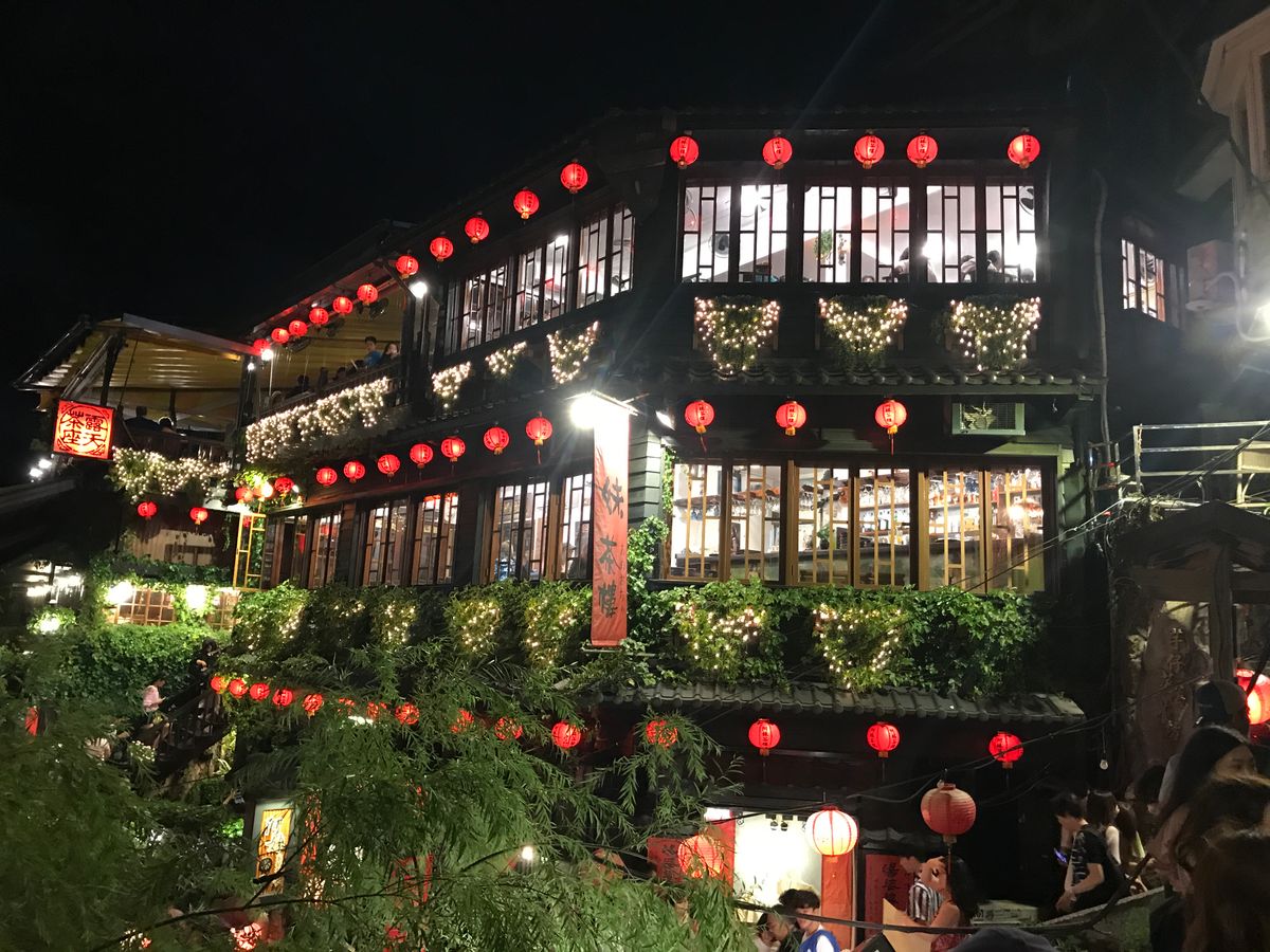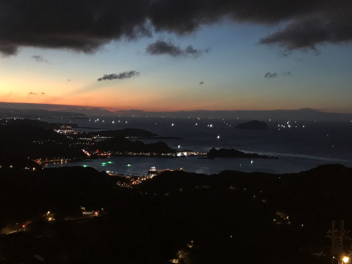 夕食なしプランでの夜の九分観光でしたが、十分楽しめました。夏休み最終週平日でも待合せ場所の観光センター(お土産物屋)はたくさんの人で、当日はバス8台が出るという事だったので、ここの口コミにあったように週末はもっと混むのかもしれません。九分は階段の傾斜がきついので歩きやすい靴で行って正解でした、これも前の口コミから参考にしました。当日ヒールで参加していた方もいましたが、ヒールは大変です。雨が降っていなかったので夕暮れ時の海が見えてとても綺麗でした。私たちは家族3人で阿妹茶屋に入り、夕暮れ時から暗くなるまでゆっくりお茶を楽しみました。混んでいるかと思い気や、なんとか並ばずに入れたのは夕食時で、ここのお茶屋さんではお茶しかなかったからかも。建物の写真を撮る人は多かったので人気写真スポットですね。最初から夕食は食べずに観光だけしようと思っていたので食事なしで十分でしたし、九分観光の後は夜市も散策できたのでリーズナブルでとても良かったです。中国人ガイドさん、一生懸命日本語で観光案内をしてくれて、若干聞きづらい点もあったけれど、笑顔でカバー。好感が持てました。