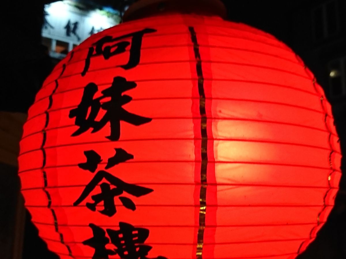 まだ明るさの残る時間帯のためか、到着時はそれほど混んでいなかったので、写真を撮りながらゆっくりと階段を登り、ガイドさんおすすめの阿妹茶酒館でお茶を飲みました。真夏の台湾は猛暑なので、飲み放題は助かりました。当然がぶ飲みです(笑)
