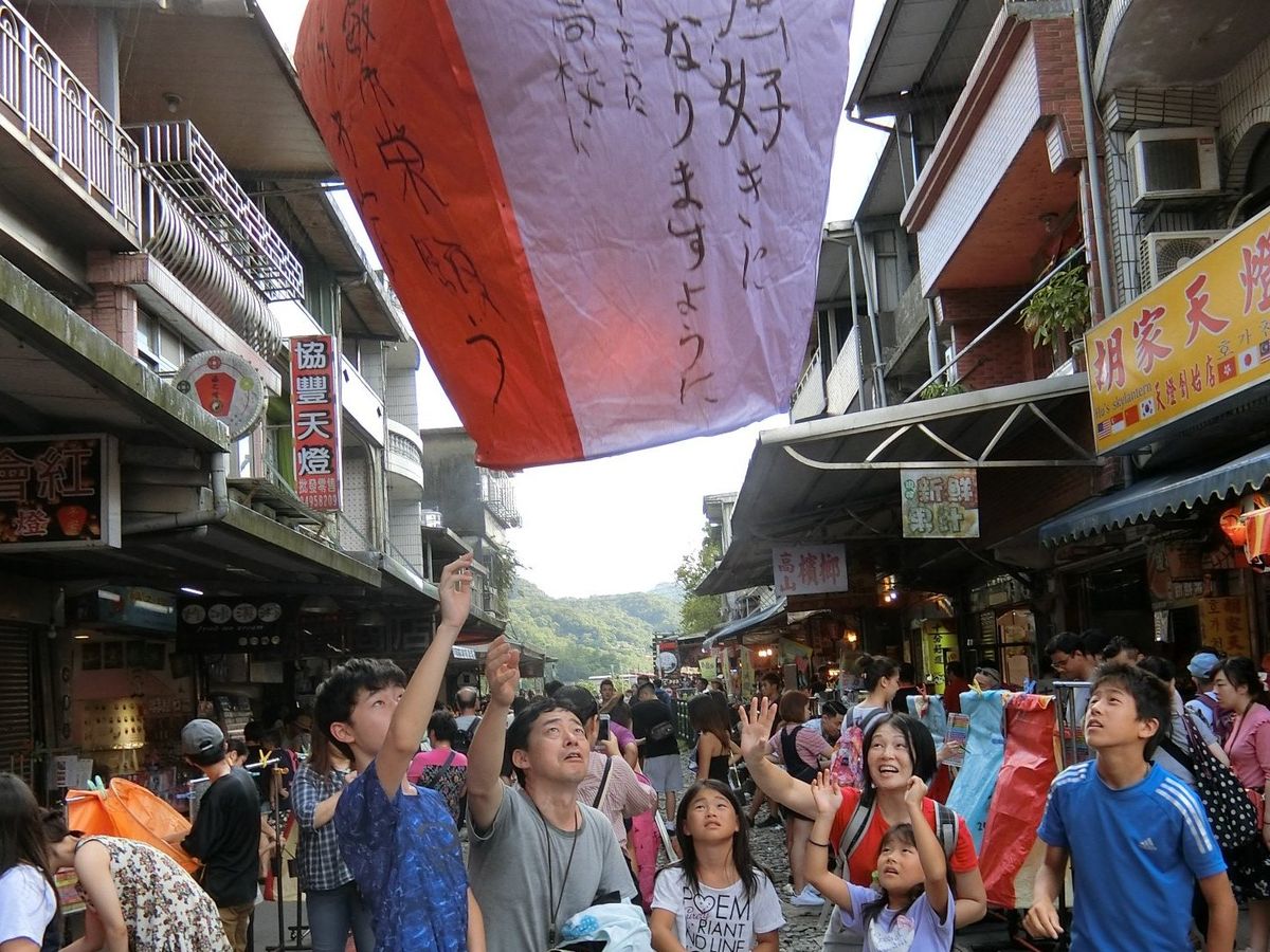 最初に十分瀑布に行ってもらい、次に十分天燈上げ、その後九份へ行ってもらいました。