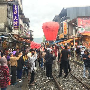 線路沿いにお店が並んでいて天燈が次々に飛んでいく情景に感動しました。