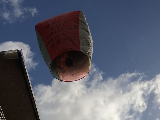 天燈のそれぞれの面にある色には意味があり、願いを書いて熱気球方式で飛ばします。