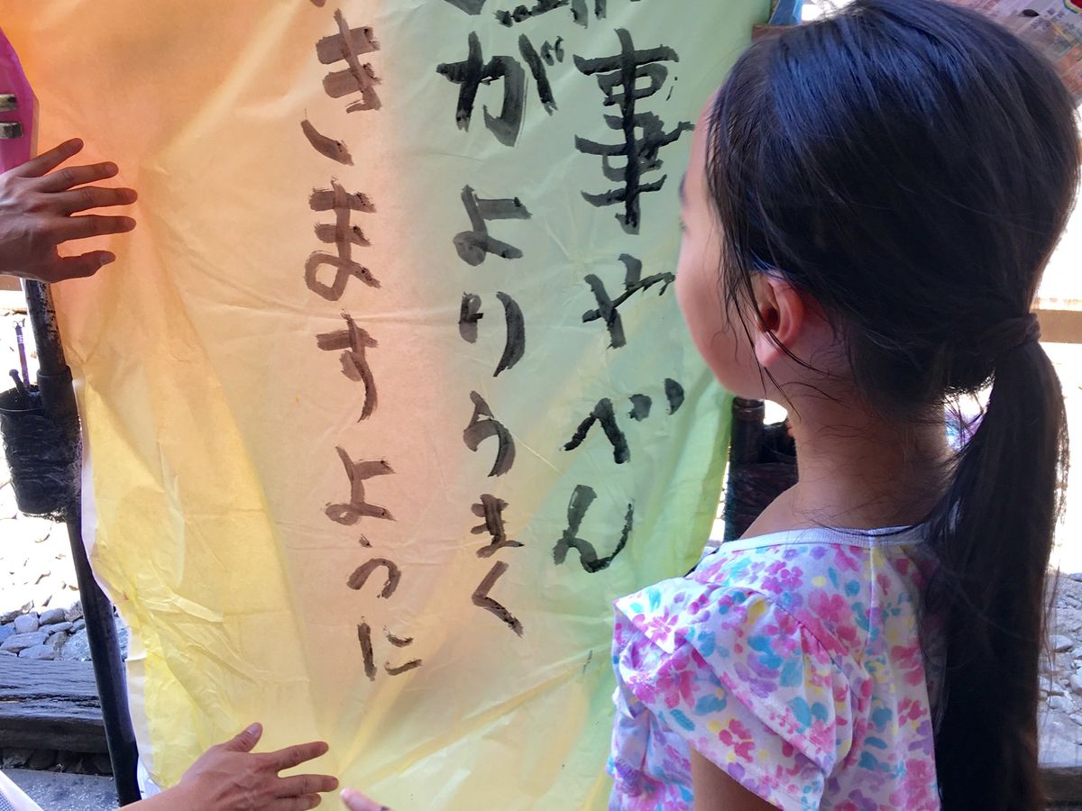 十分の天燈上げで、娘が膝に墨を付けてしまったのですが、親より先に気がついて、ウエットティッシュで拭いてくださり、有り難かったです。