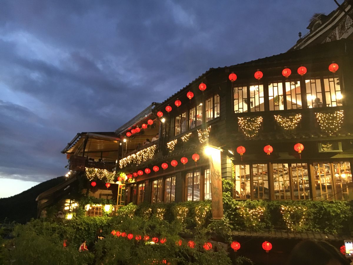 九份に着いたのはちょうど日が暮れる頃で夕焼けが綺麗でした。阿妹茶房でゆっくりして帰りました。ホテルを16時に出発しましたが、九份でゆっくりしたいなら15時出発をお勧めいたします。最後は士林の夜市で降ろしてもらって大満足です。電車やバスで行くのも楽しいと思いますが、夏は暑いし混んでることも考えてお願いしてよかったと思いました。