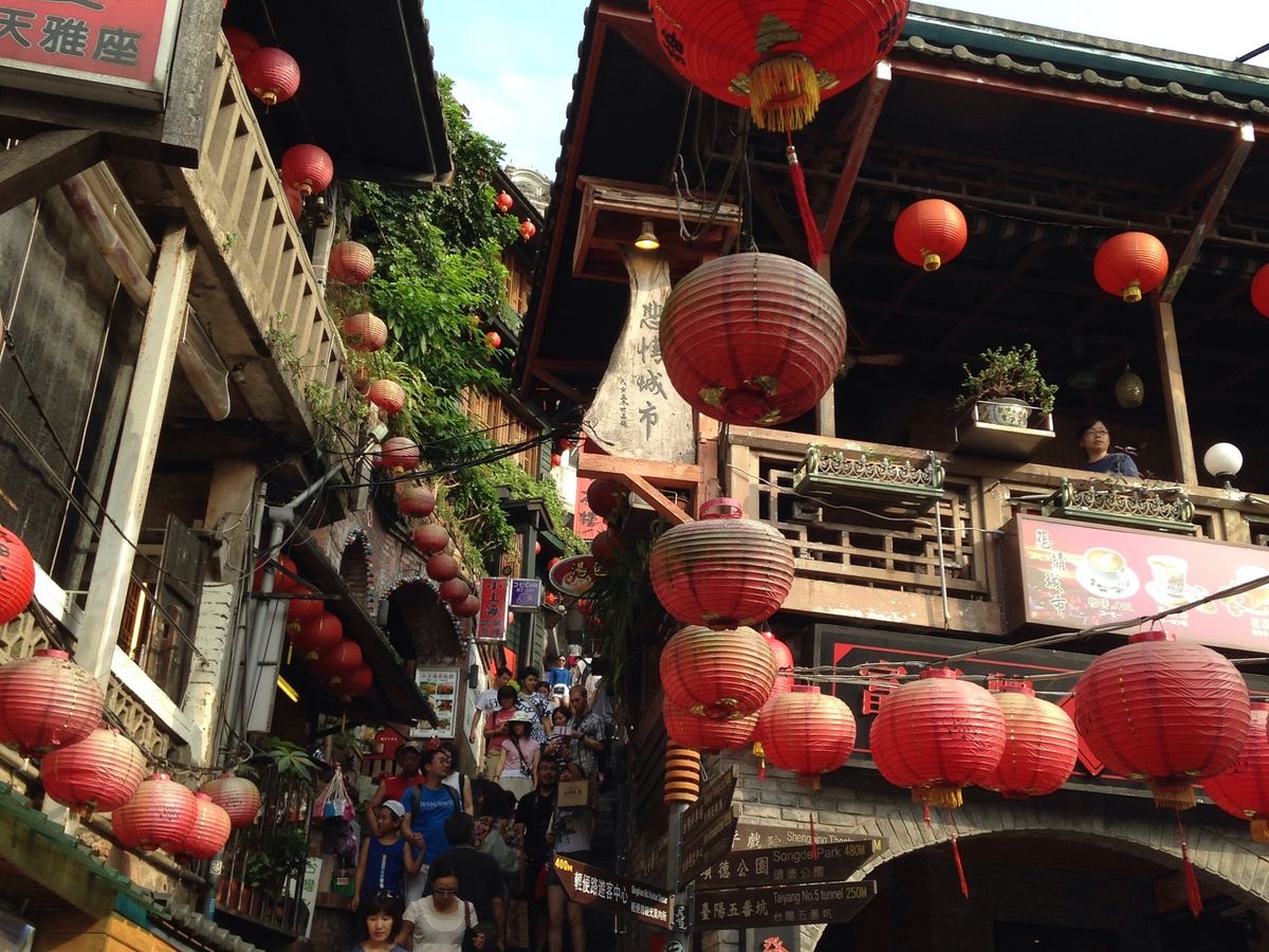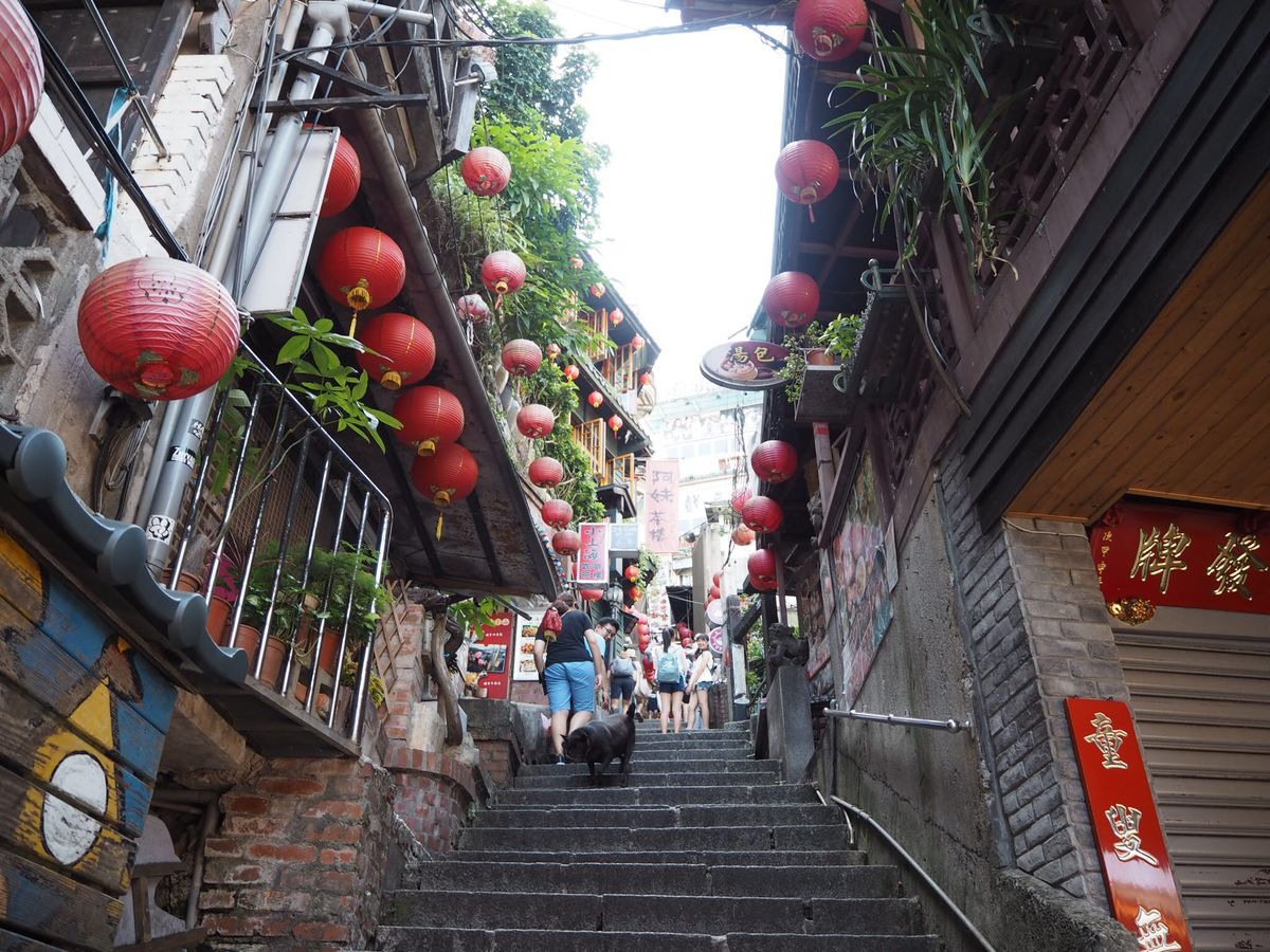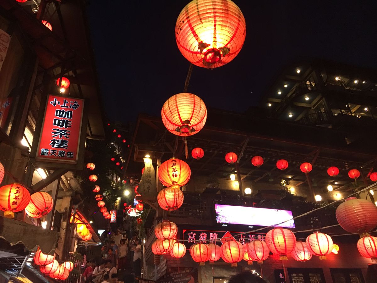 雨予報が一転し、晴れました。その日、日本人が夏休みということもあり、バスは12台も運行していたようです。金曜日だったおかげで、土日ほど九份も混雑しておらず、十分に楽しめました。夜市も50分時間を当てていただき、手頃な靴屋や胡椒もち、タピオカミルクティを楽しみました。