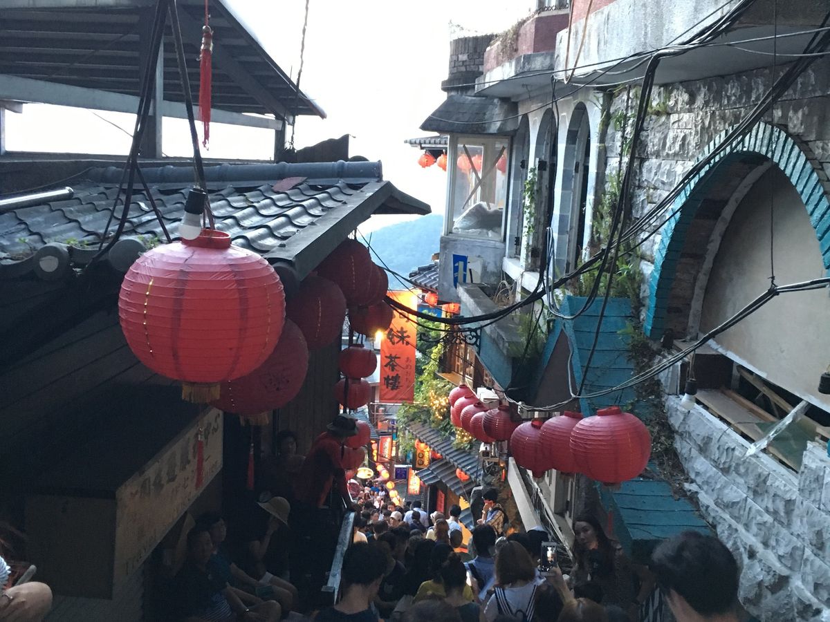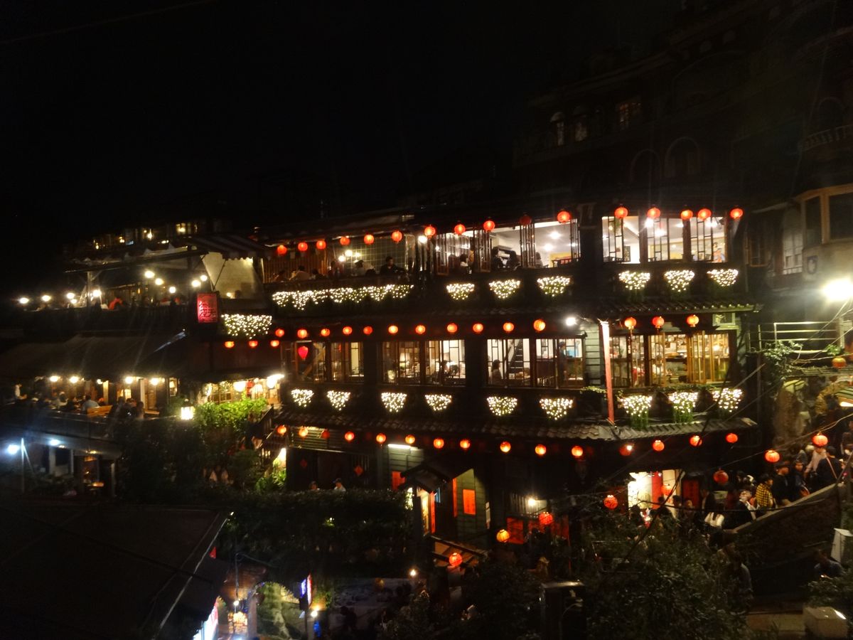 親子3人で、九份ツアー! 九份までのバスで、母の私だけ酔い、夕食はいただけませんでした。 夕食後、九份の写真の通りの坂道を登り、また登り、体調のすぐれない母のみ、疲れたの連呼(笑) 観光客も、多かったですが、担当のガイドさんのナイスアドバイスの通りに行動したら、お茶屋さんにもすぐ入れて、美味しいお茶も頂けて、まんぞくしました。