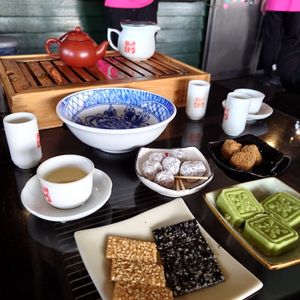 早めに着いたお陰で行きたい阿妹茶楼の3階テラスでお茶が出来、パイナップルケーキも並ばずに買えて、タロ芋スイーツ、草餅も全て食べれました。